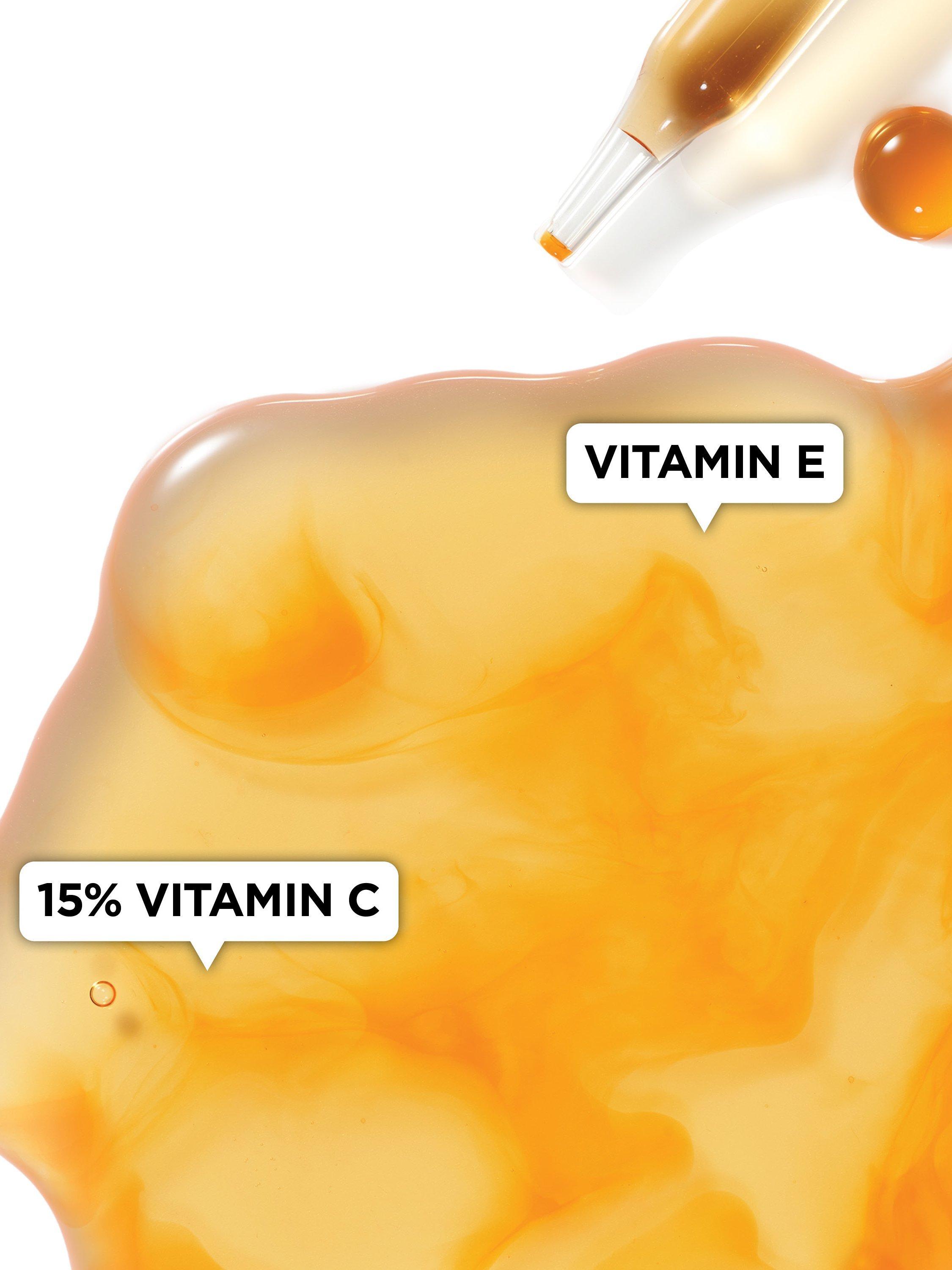 - Formulated with 15% vitamin C, plus vitamin E