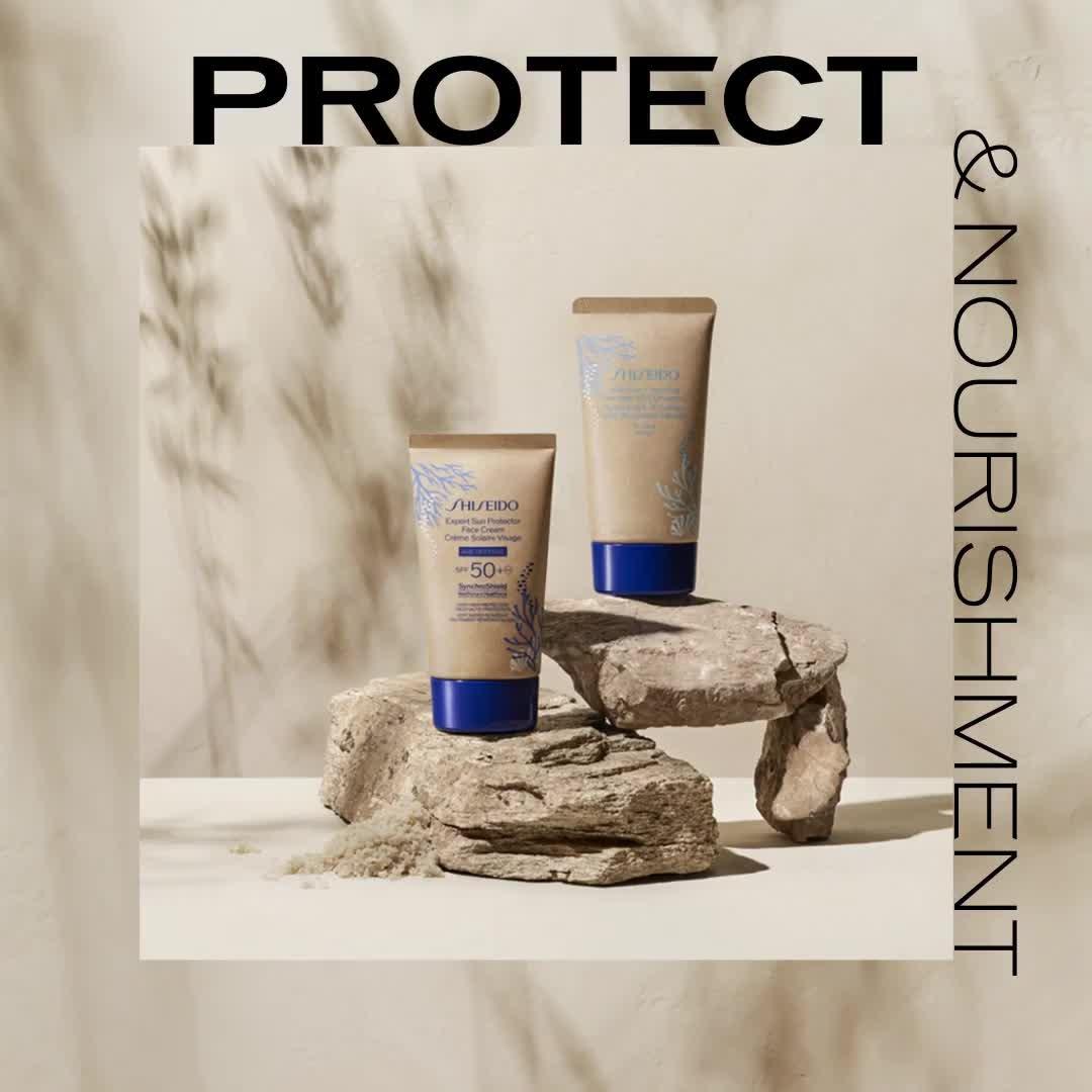 Our iconic responsive UV protection cream SPF50+, which becomes stronger when exposed to external heat, water and perspiration, is now in a new limited edition packaging with 48% less petroleum-derived plastic*.