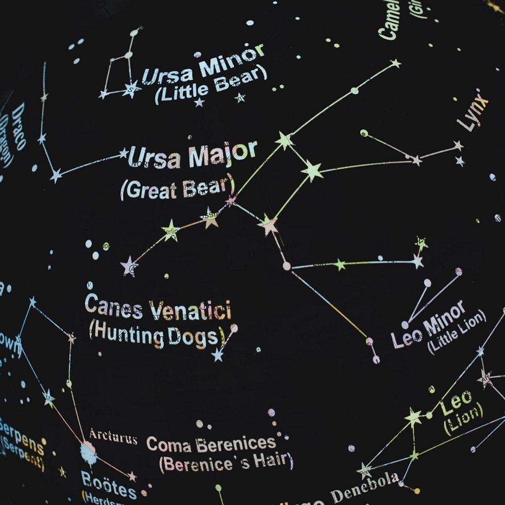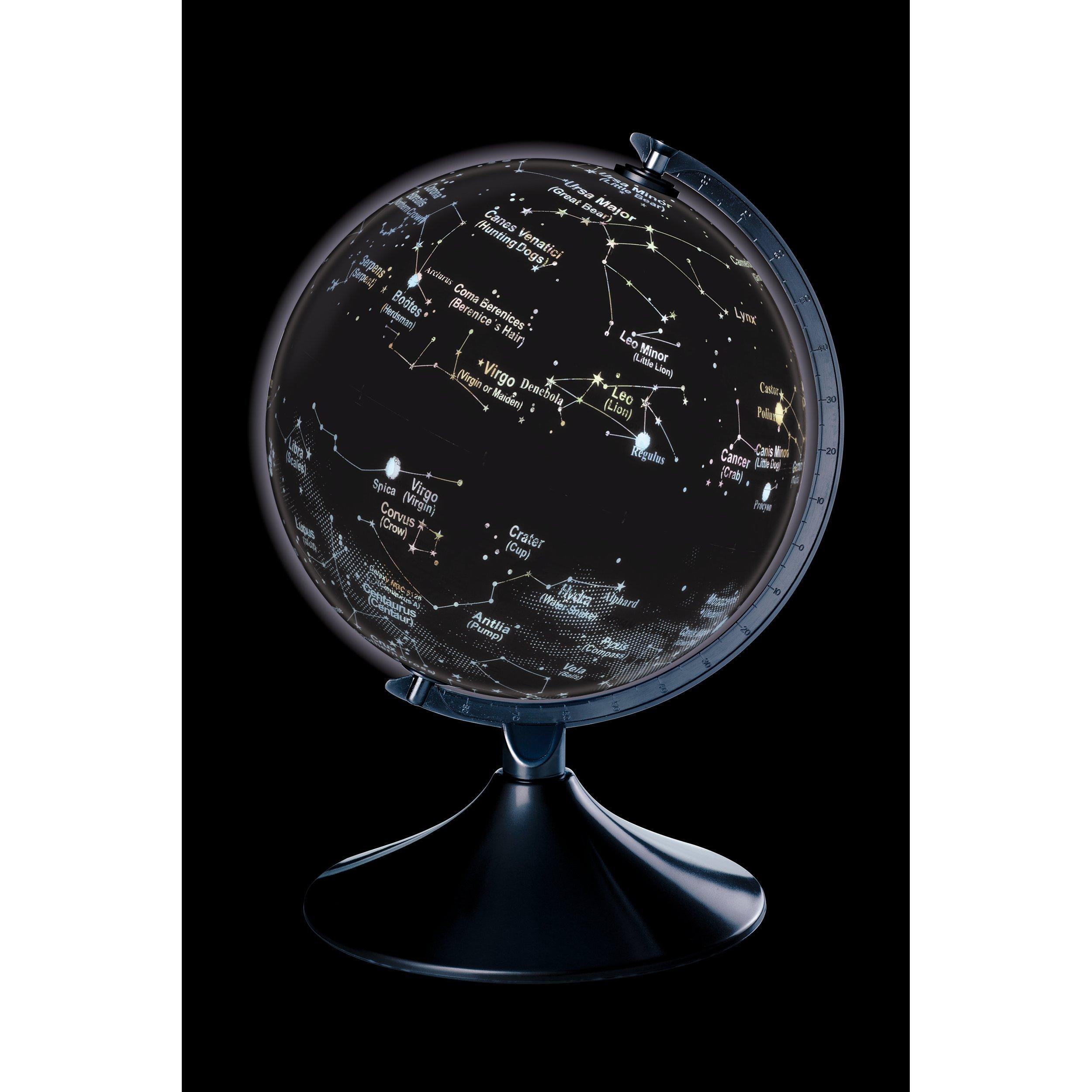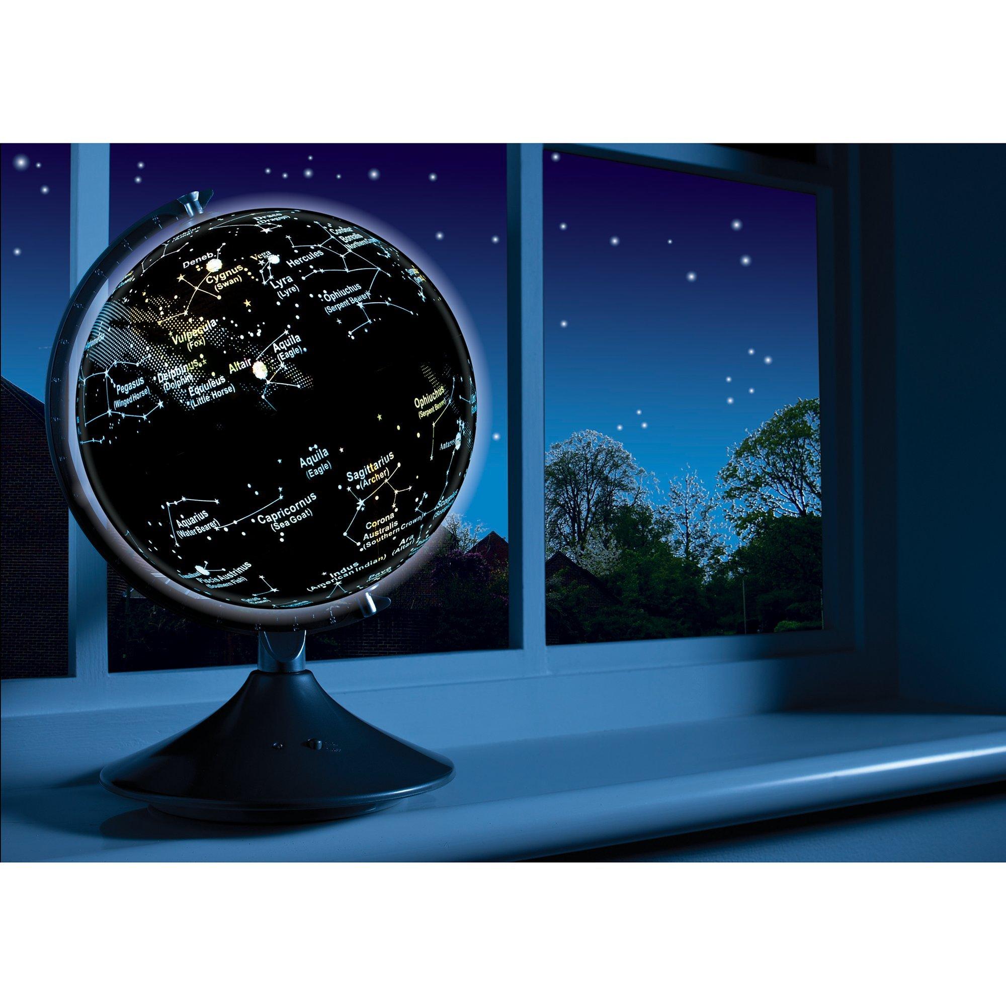 Switch the light on and the illuminated night globe will show you key stars and constellations with their Latin and common names. An advanced light sensor automatically turns on the LED illumination whenever the room darkens, magically transforming the earth globe into a fascinating map of the stars.