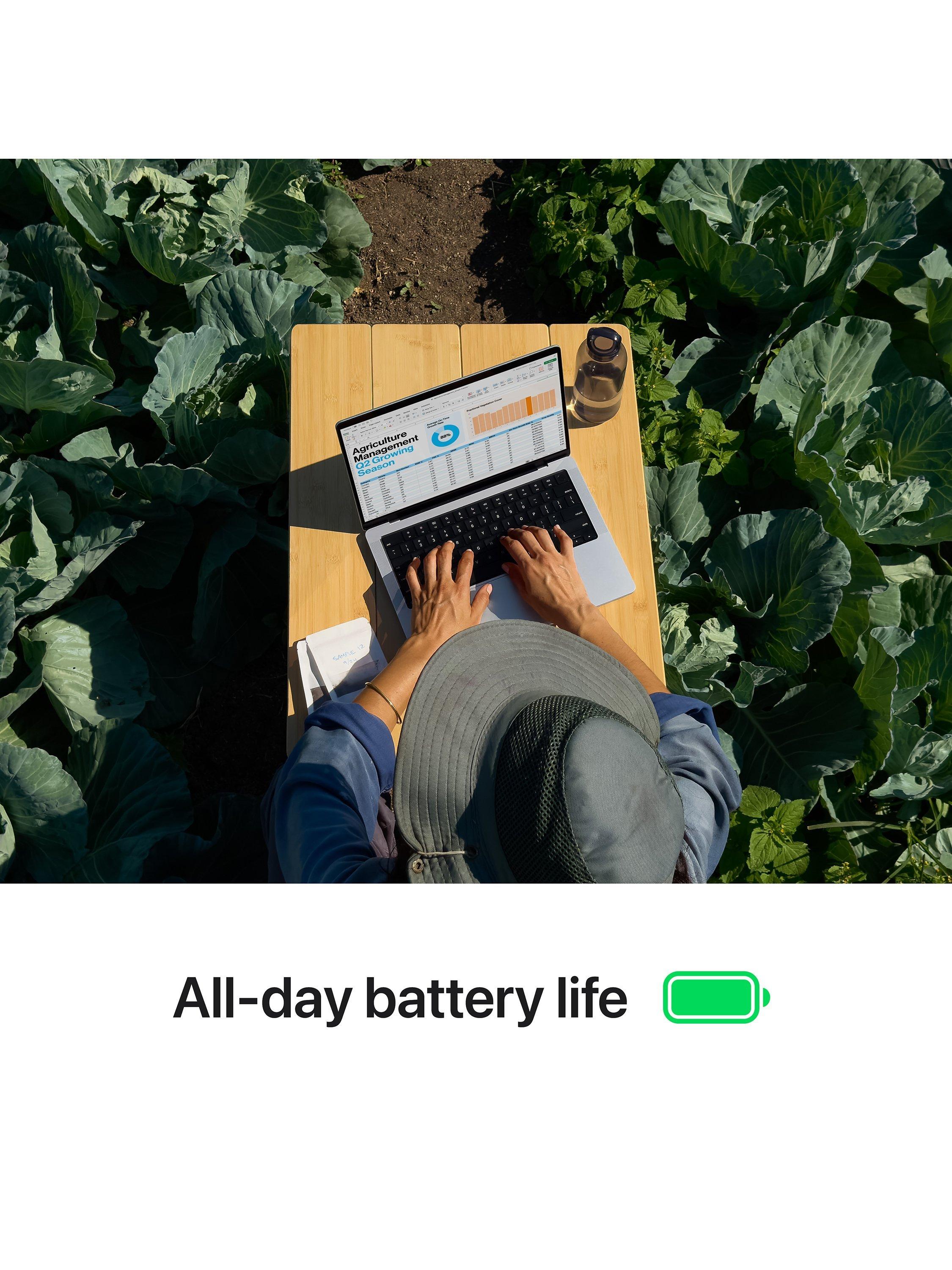 The 14 inch MacBook Pro delivers the same exceptional performance whether it’s running on battery or plugged in.