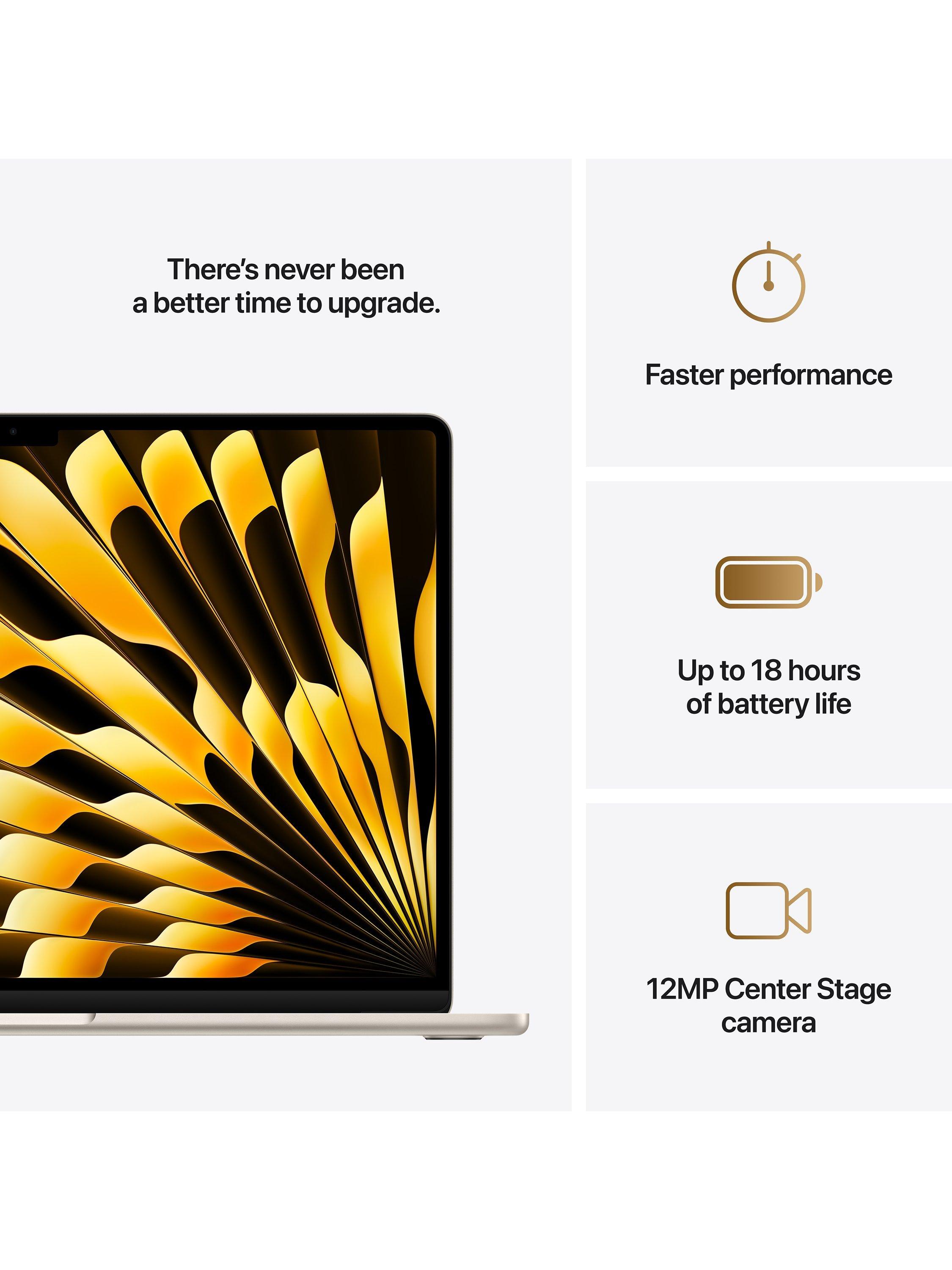 The 15-inch MacBook Air with the M4 chip lets you fly through work and play. With Apple Intelligence,[1] a spacious Liquid Retina display, up to 18 hours of battery life[2] and a strikingly thin and light design, it’s built to last and can take on just about anything, anywhere.