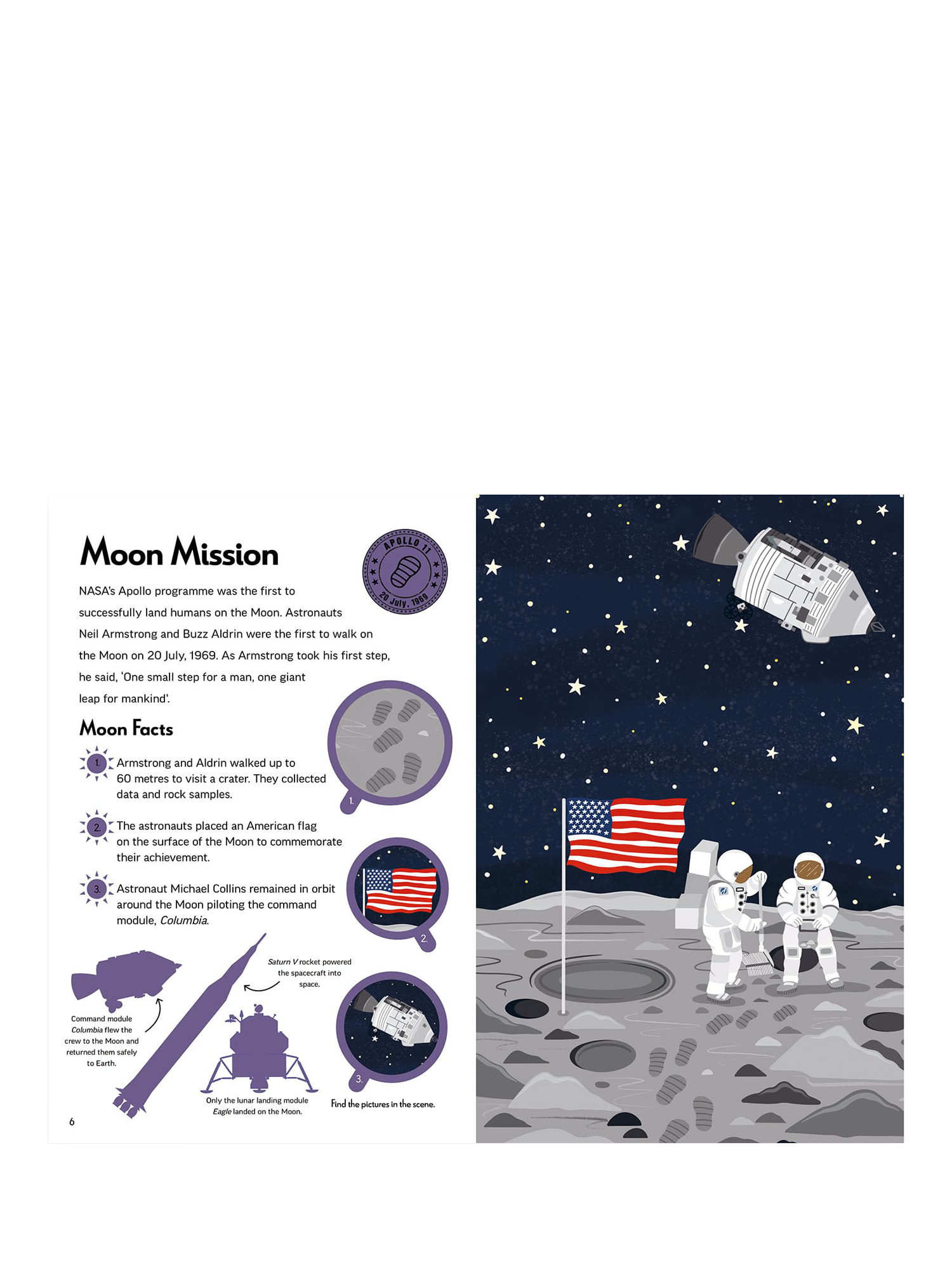 Build your own original 29cm high globe model of our closest neighbour in space - the Moon. Then dive into the accompanying 32-page book to explore over 100 bite-size facts about the Solar System, space travel and discoveries. With seek-and-find fun in every scene, plus a quick quiz, this book and model kit will ignite a lifelong interest in the science and exploration of our universe.