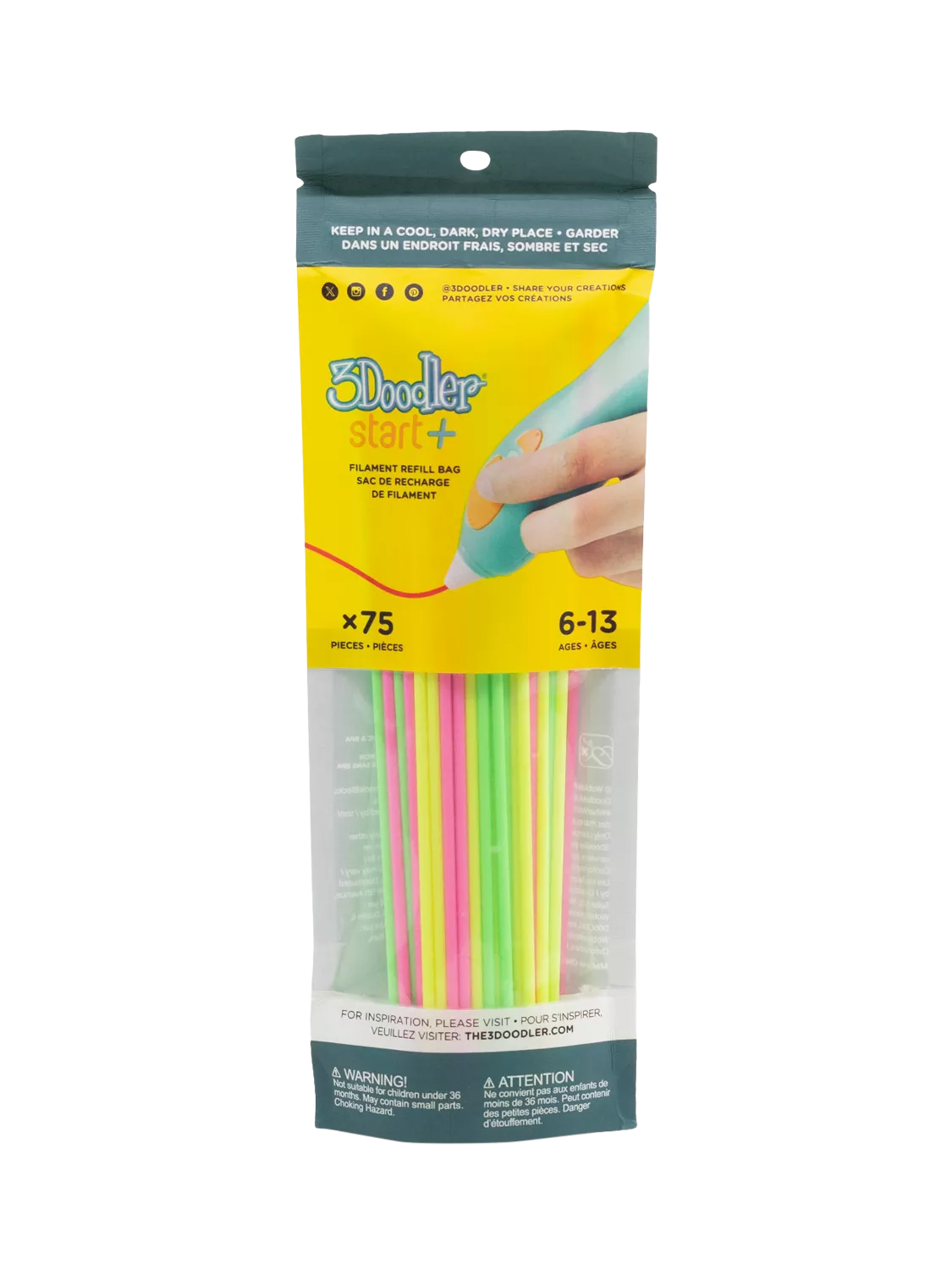 3DoodlerStart+ Filament Refill Pack, 75 Piece, Multi