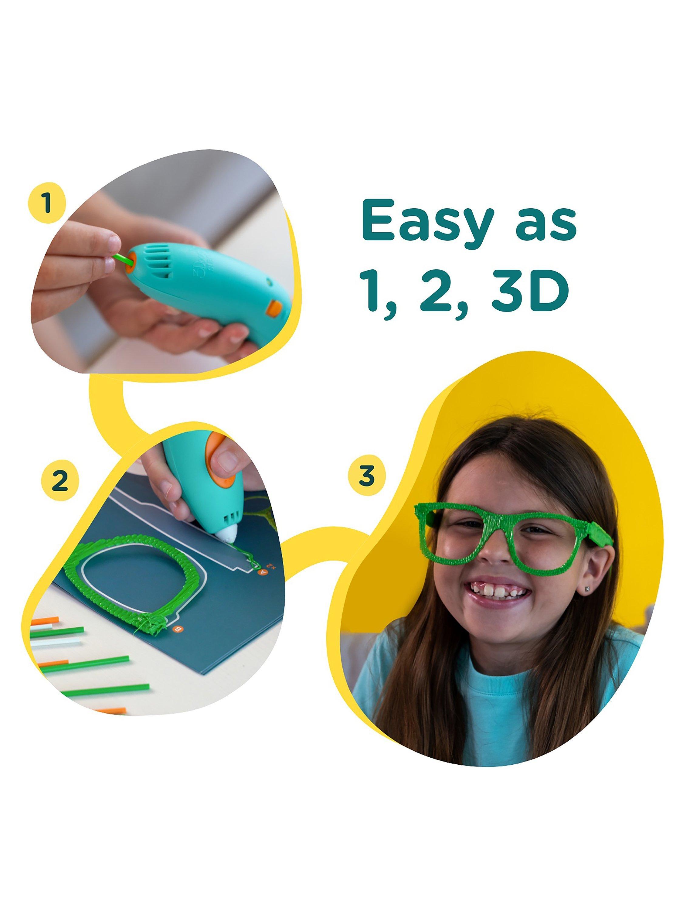 The 3Doodler engages creative kids' imagination, giving them the tools to visually express their ideas at the press of a button. The 3Doodler Start+ 3D pen squeezes out plastic that hardens quickly and is completely safe to touch with no hot parts, messy resin or sticky glue.