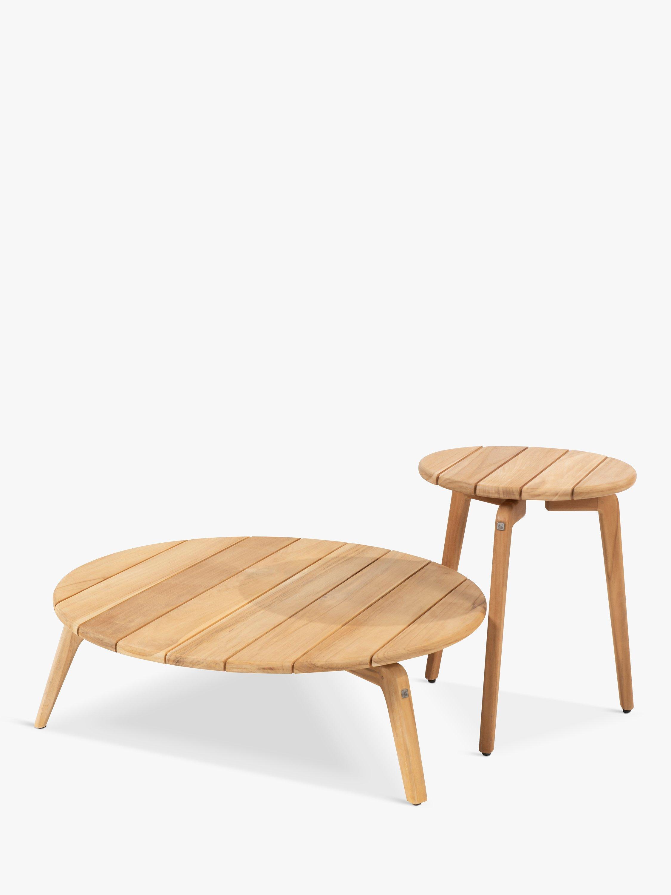 - Round Zucca coffee table and round Zucca side table, made of FSC-certified teak wood
