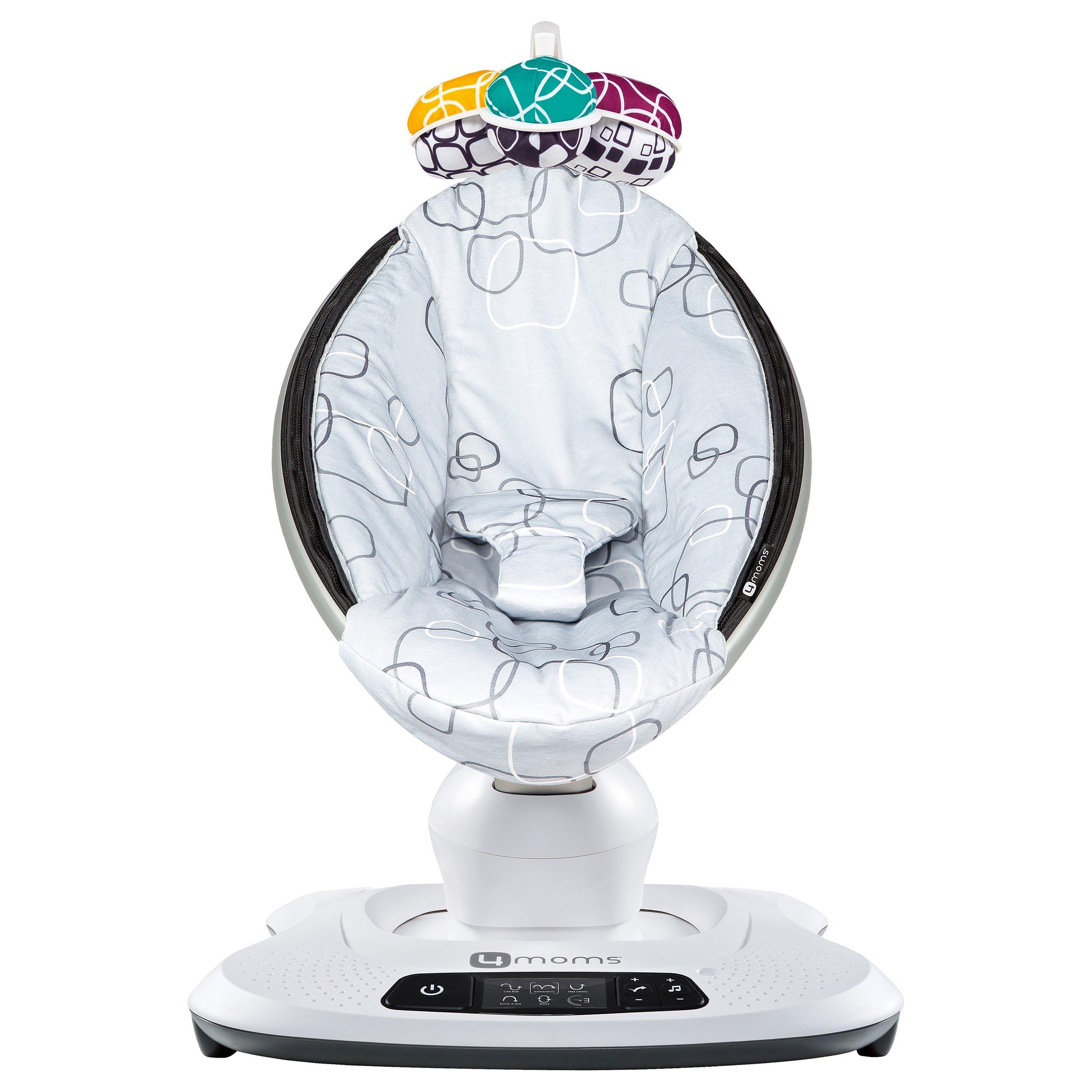 The 4moms® mamaRoo® rocker is the original infant seat that replicates parents natural motions. It bounces up and down and sways from side to side, just like parents do when comforting their baby.