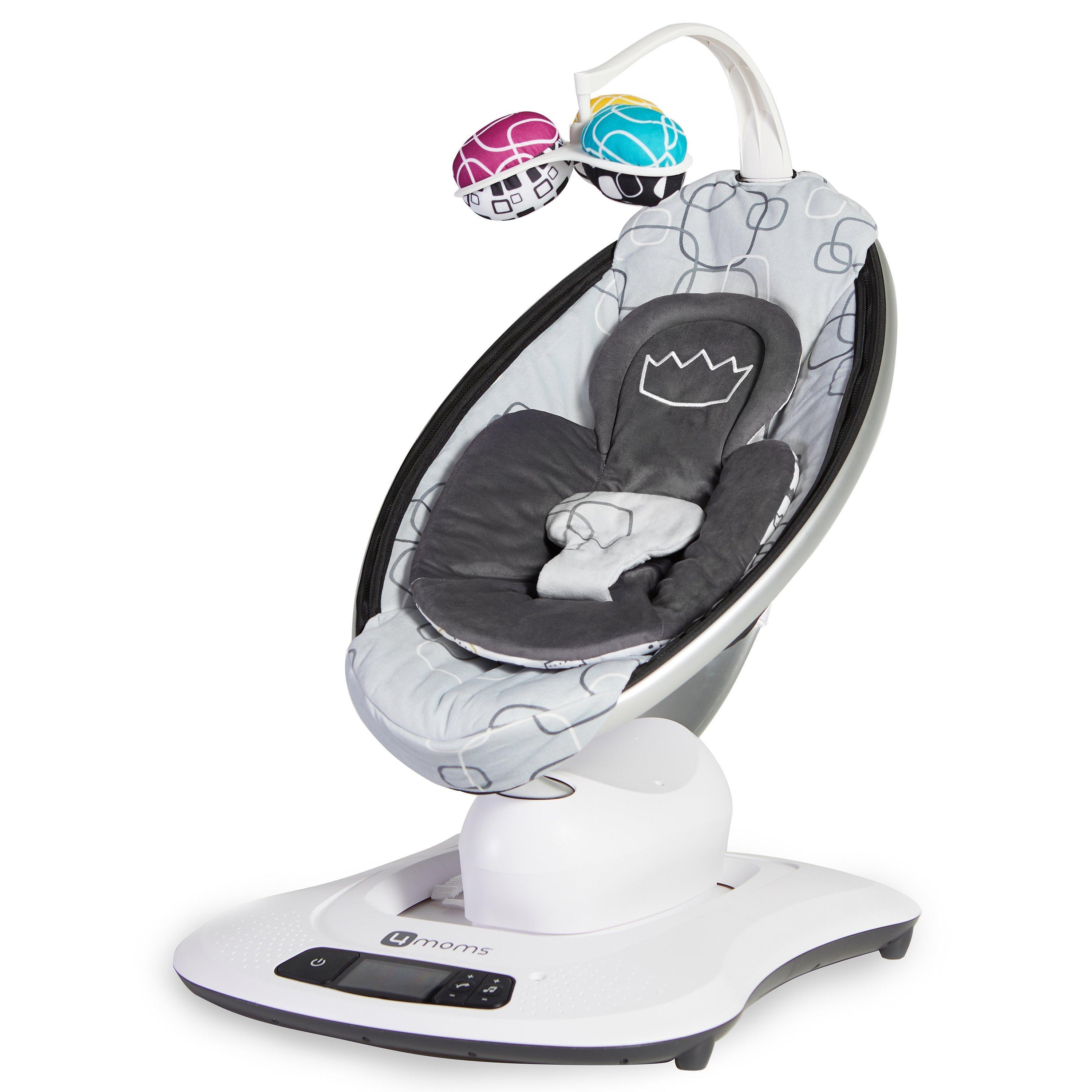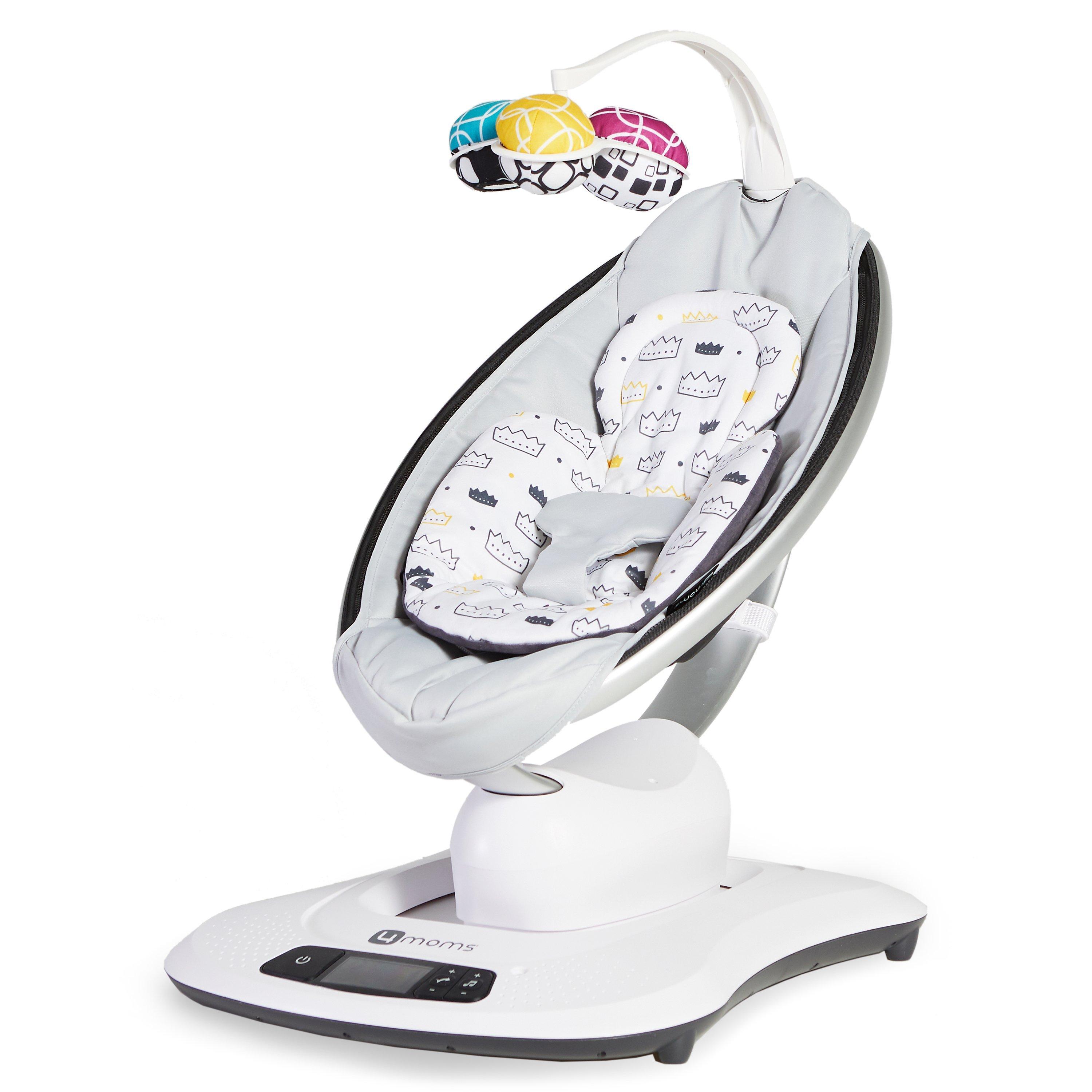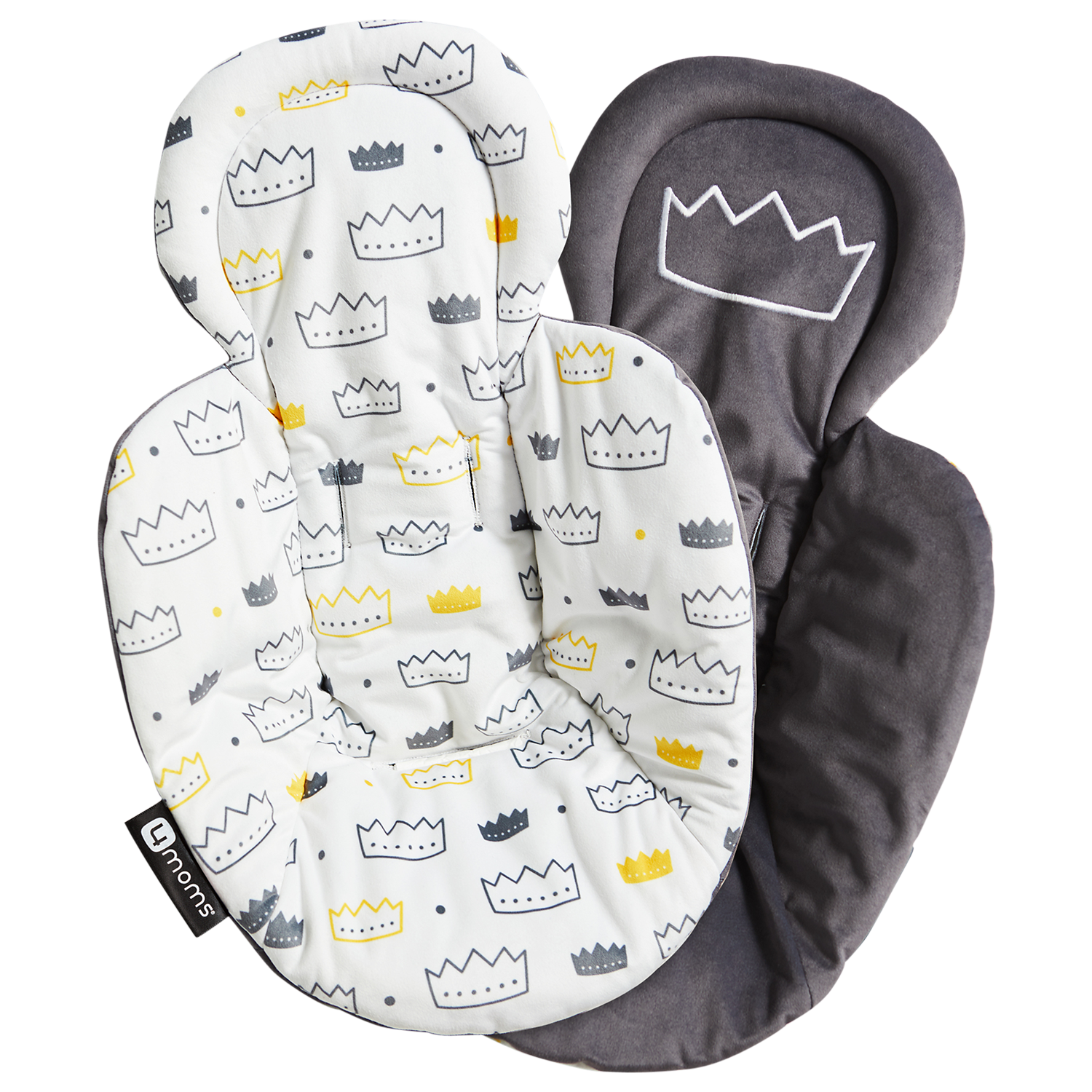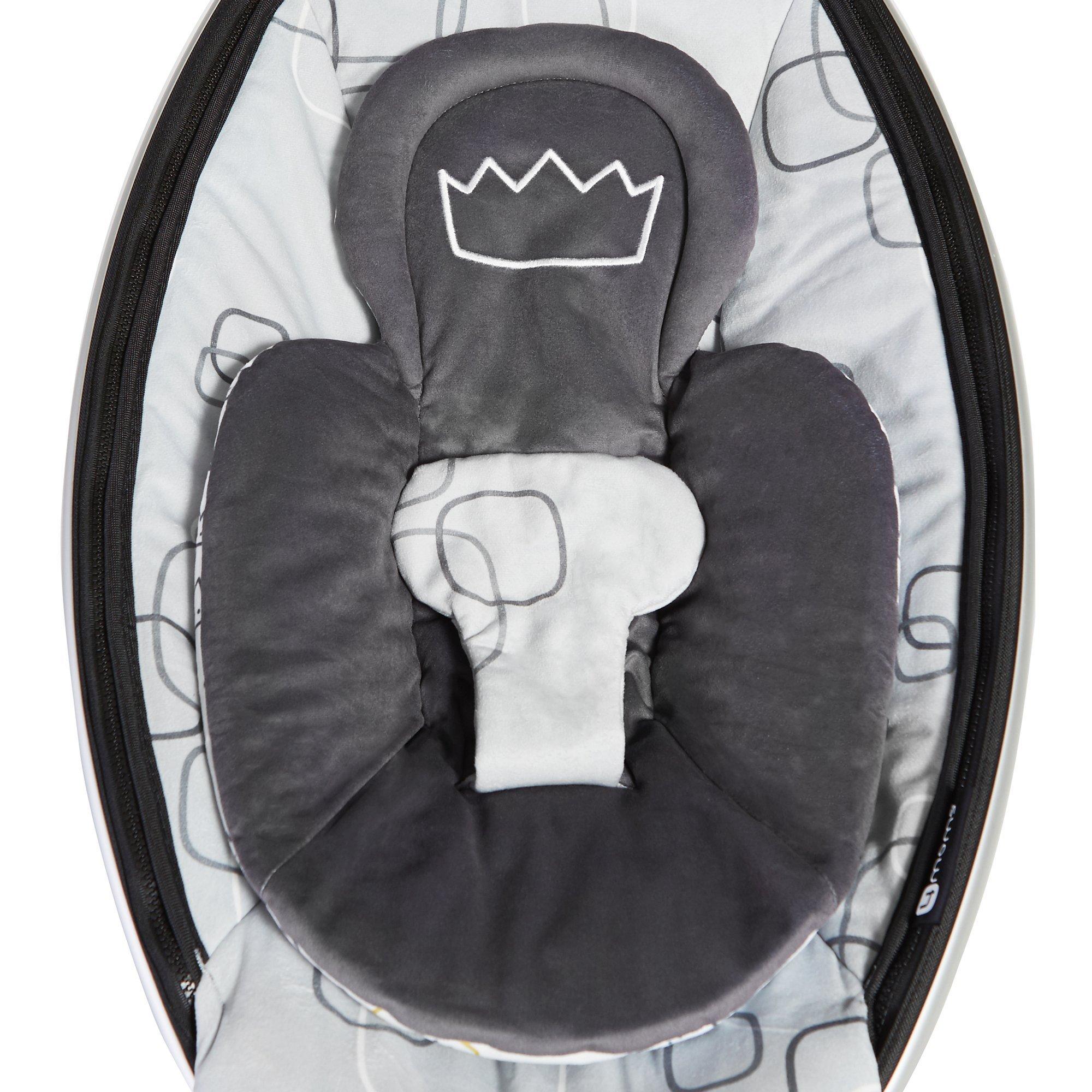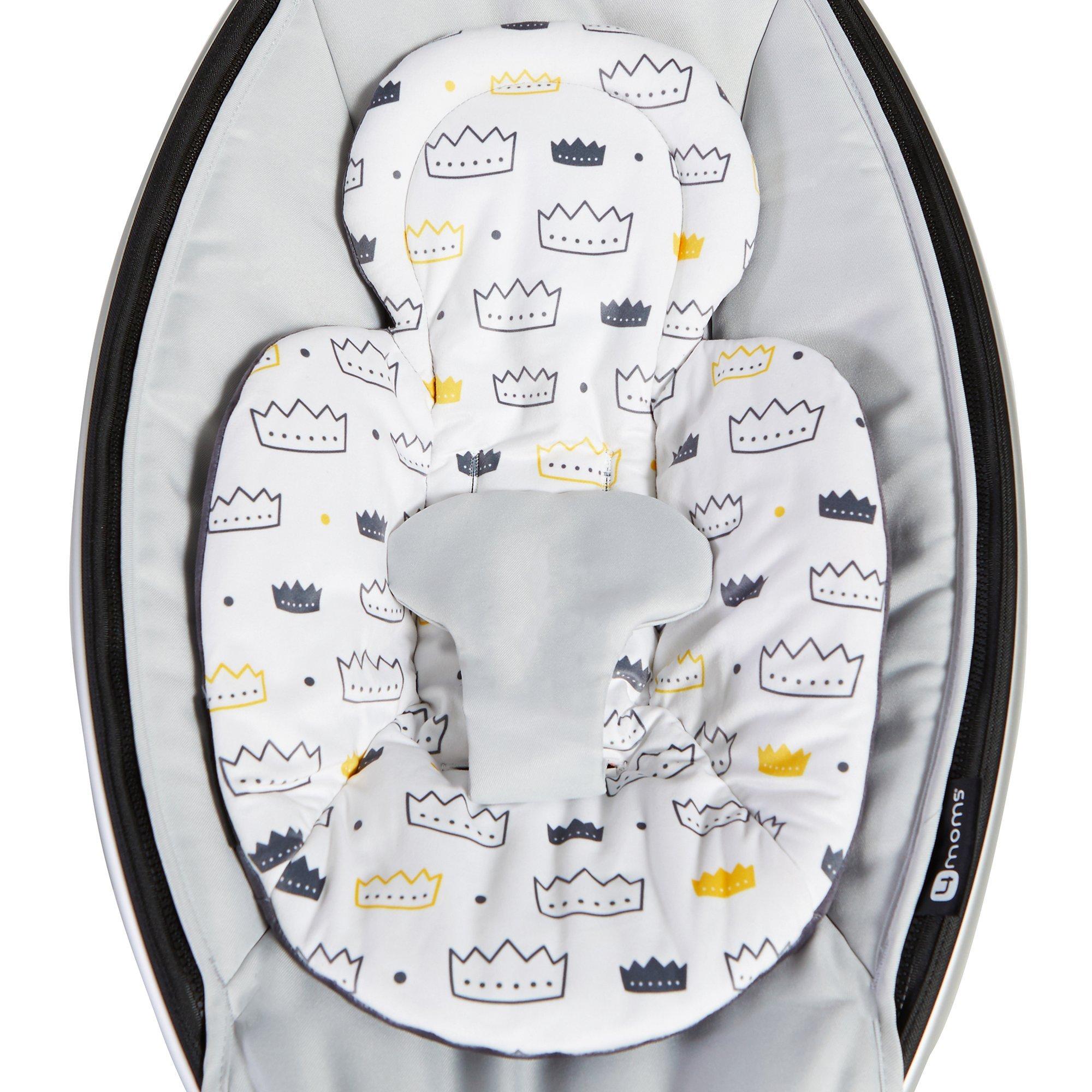 The reversible 4moms mamaRoo Newborn Insert helps your newborn feel snug and secure and fits perfectly with all 4moms infant seats including the 4moms mamaRoo Rocker/Bouncer, 4moms rockaRoo Rocker, and 4moms bounceRoo Vibrating Bouncer, providing additional comfort and support for your newborn. Your little prince or princess can enjoy this plush, modern inser with a singular embroidered crown on the front of the new insert, and a mosaic of crowns on the other side. The soft, plush newborn insert is easy to attach and remove and is machine-washable for convenience.