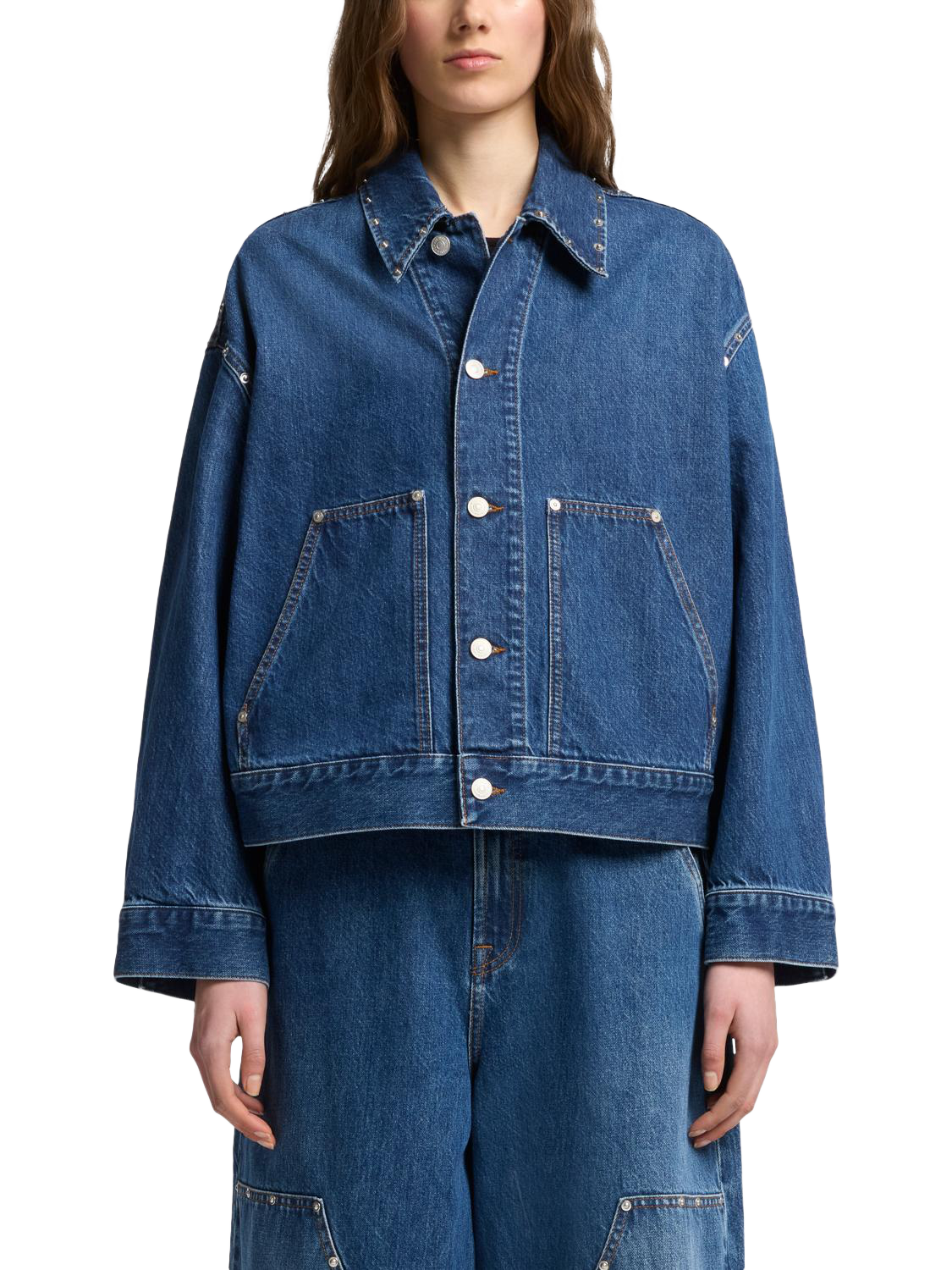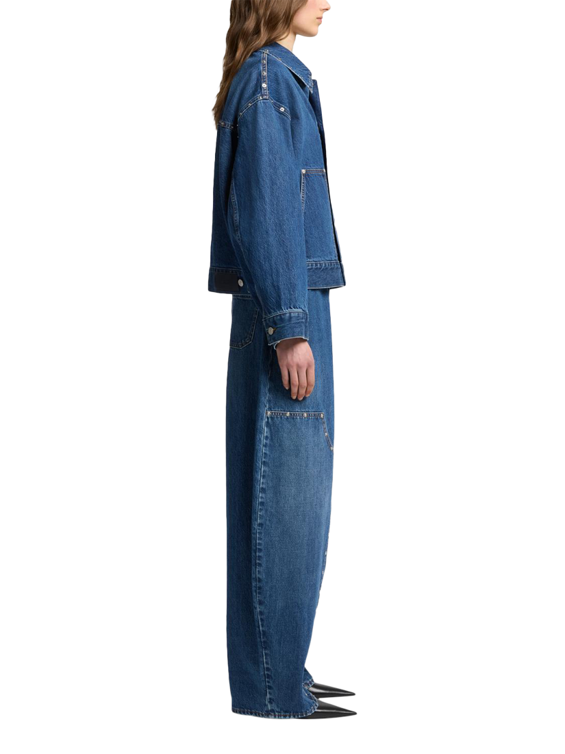The Cropped Jacket is impeccably crafted from dark-blue Mankind denim and elevated by carpenter-inspired pockets and silver rivets. Designed for an effortlessly relaxed fit, it looks as good with a mini denim skirt as it does with dramatic, balloon-leg jeans.