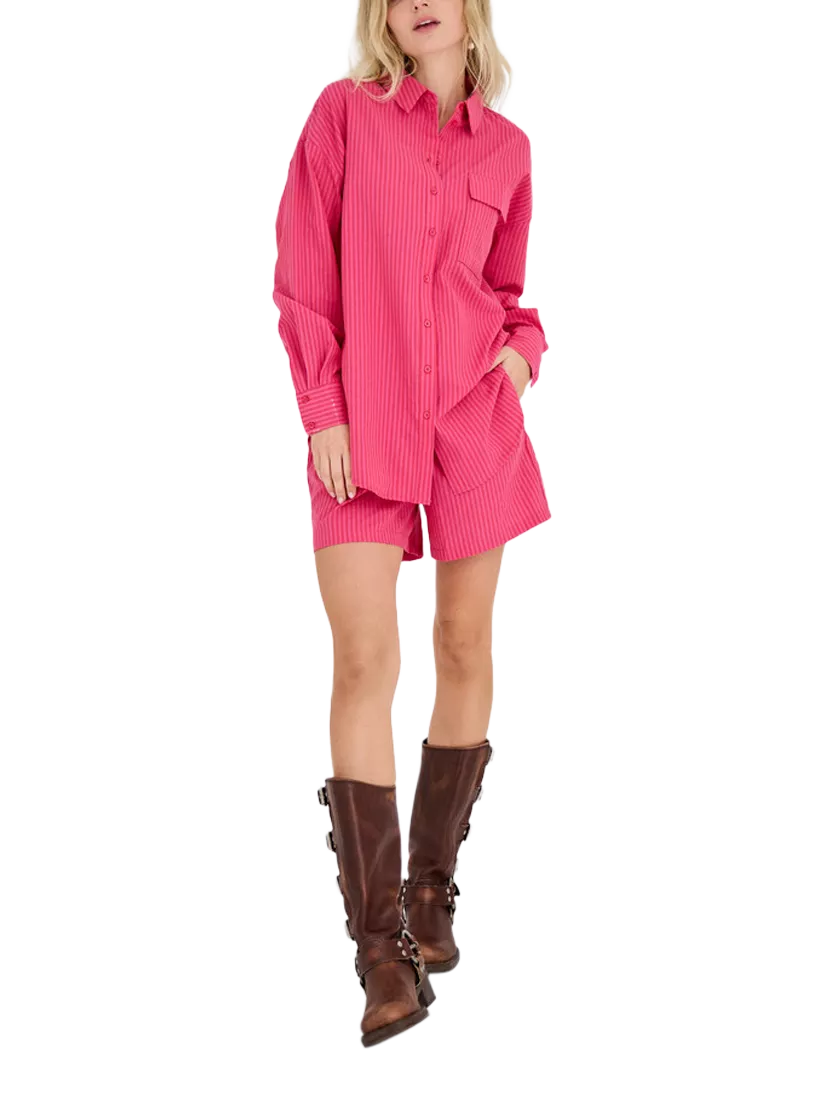 The Agni Shorts are a pair of shorts with vertical stripes. The shorts feature an elastic waistband and are made from a comfortable and casual fabric. They have a relaxed fit and deep side pockets. They fit true to size.