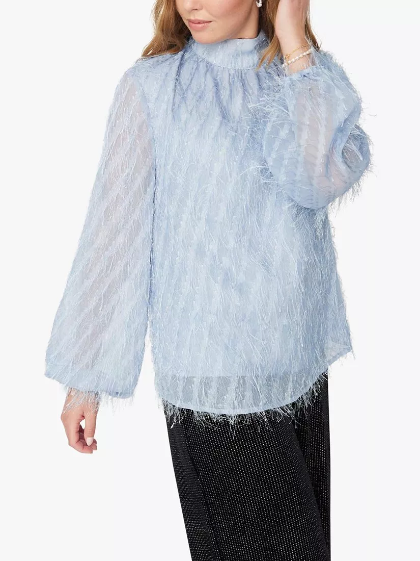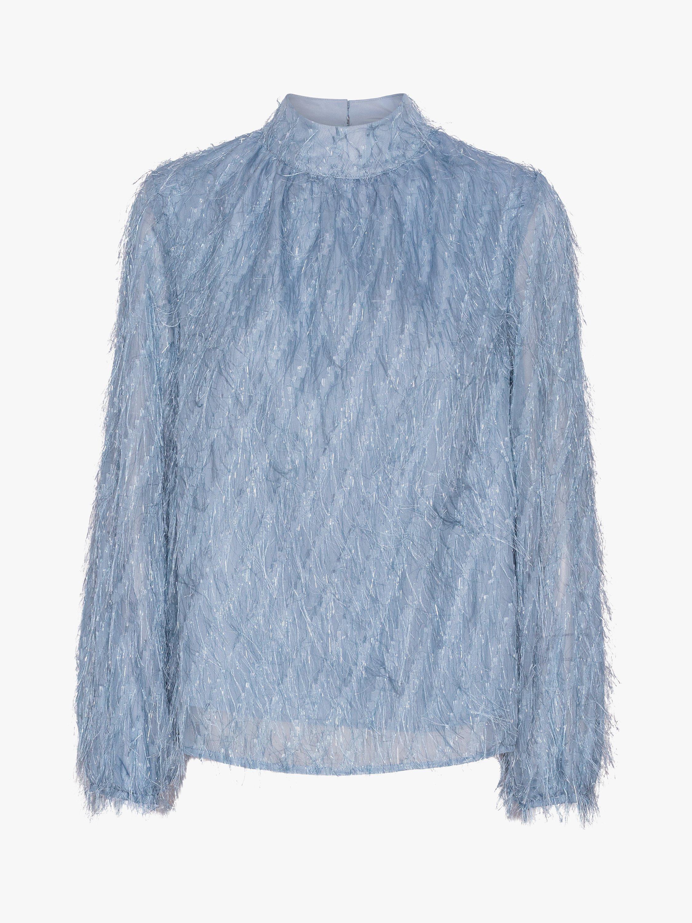 Elevate your evening looks with Aiden. In a loose fit that pairs effortlessly win skinny trousers, this blouse from A-VIEW features all over fringed metallic embellishment. With a high neck that closes at the back with buttons, it's designed with long loose sleeves and gathered details at the neck.