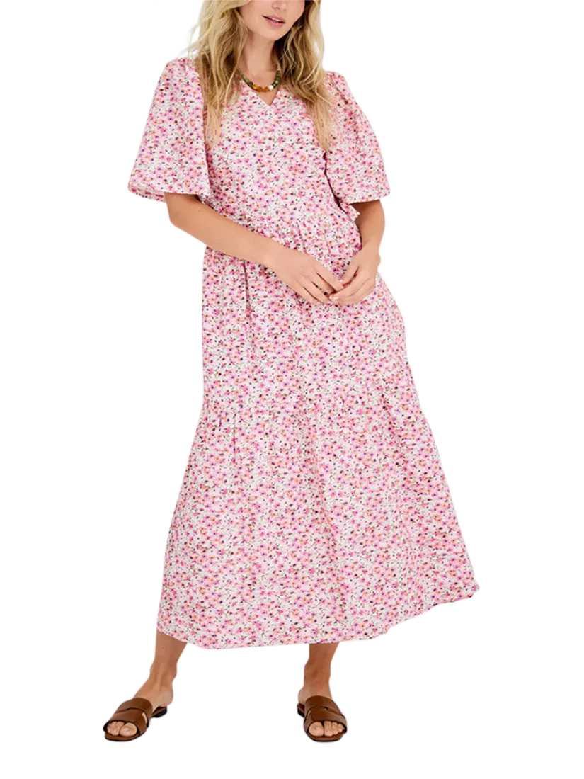 Designed to cinch the waist with a wrap front and tiers through the skirt, this midi dress from A-VIEW is a stunner for summer. With a lightweight cotton composition, a v-neckline and short puff sleeves, it's printed with sought after florals that we can't help but let define our collection season after season.