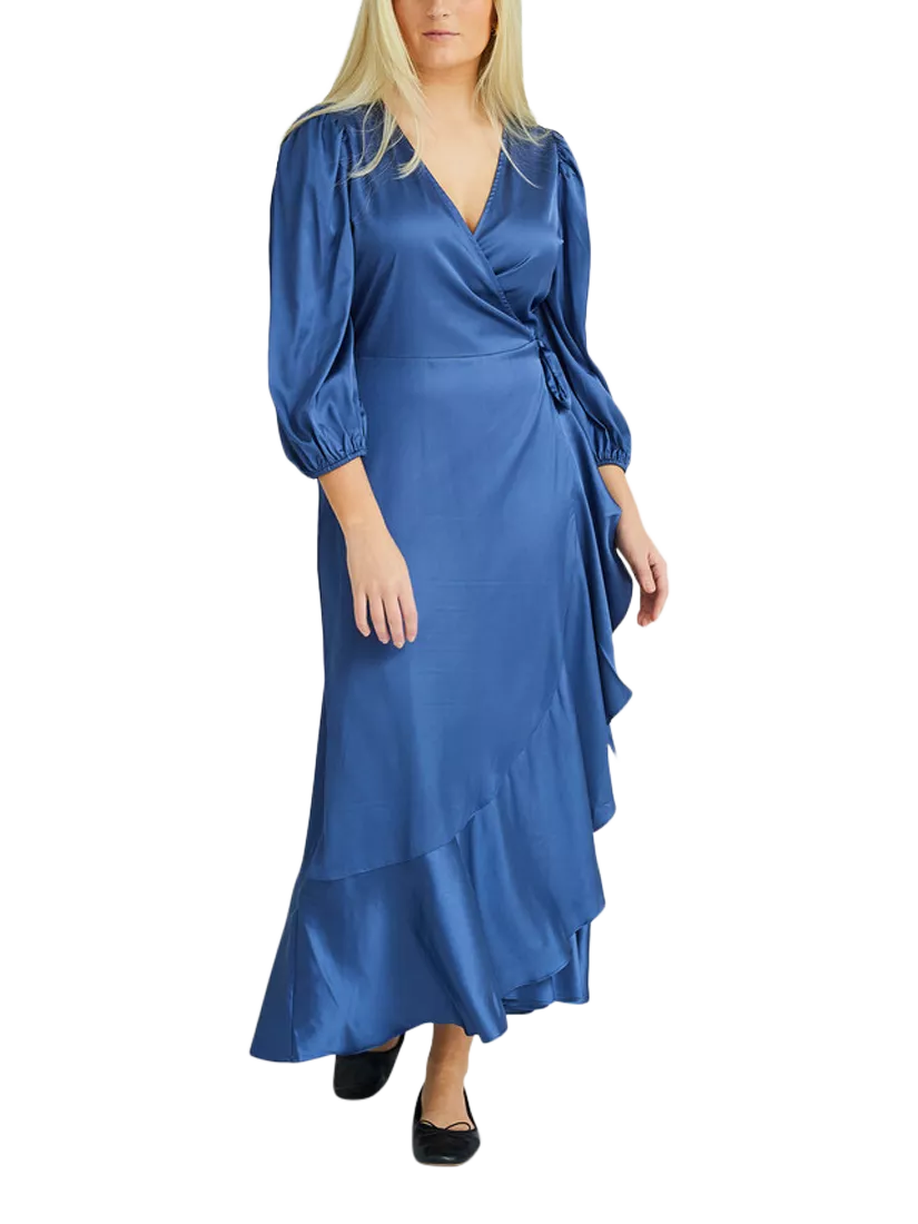 Camilja dress is a midi dress in a satin material with crinkled effect. The dress has a wrap style, 3/4 sleeves and v-neck. In addition, there is a long peplum effect at the bottom.