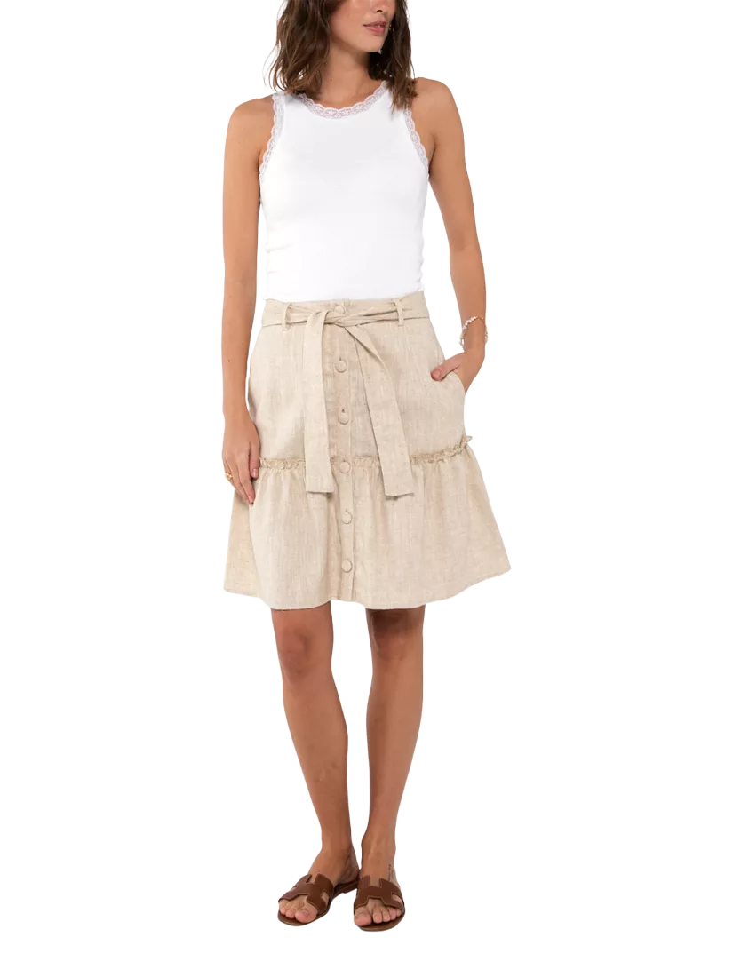 The Florine tank top is a close-fitting top with lace details. The top has fine gathered details on the edge and a fine lace edge on the neck and in the sleeve. The material is a soft rib quality in viscose.