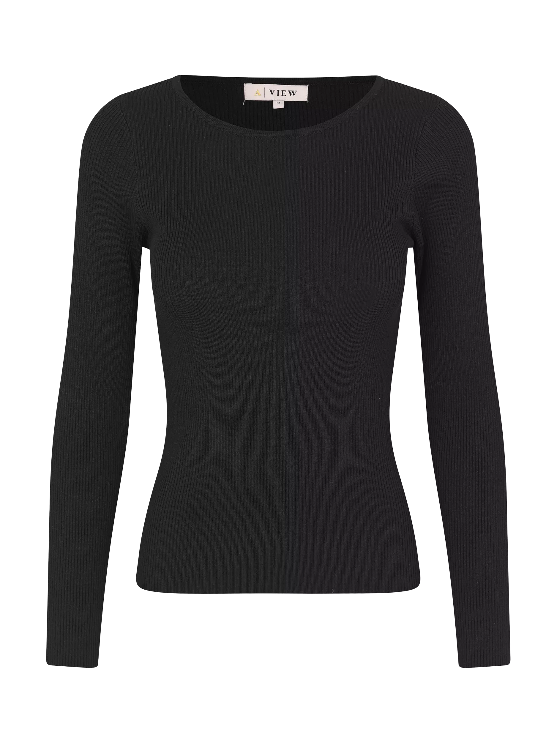 The Lana rib knit blouse is a ribbed, striped blouse. The blouse features a tight fit, a round neckline, and long sleeves. The blouse fits true to size.