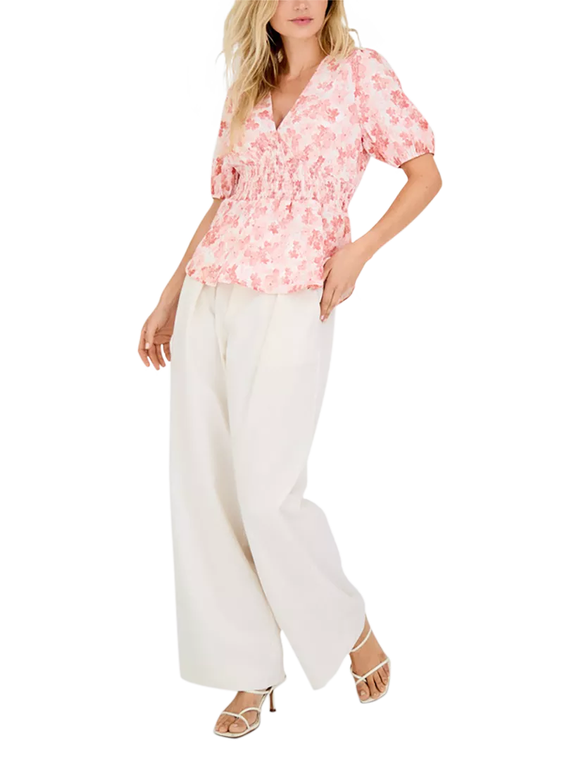 The Lassie Blouse mixes floral charm with comfort: designed in soft tones, it boasts a stylish V-neck, puff sleeves, and waist smocking, perfect for effortless, chic daytime wear.