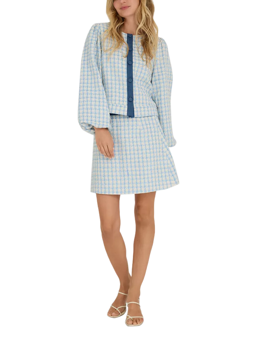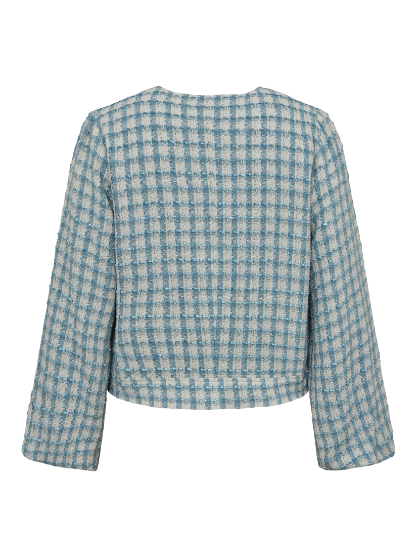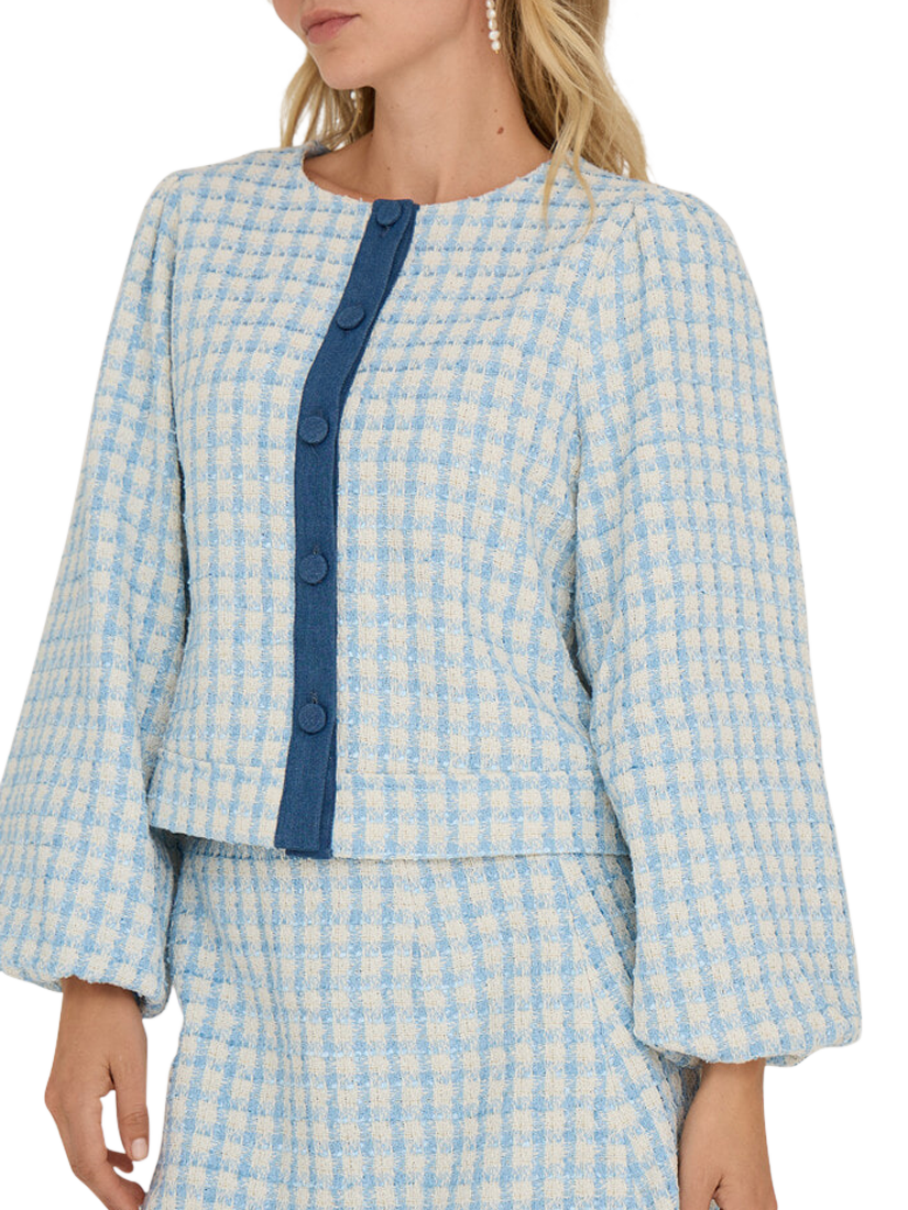 Neatly framed with a round neckline and offset by a splash of checks, it is made from robust fabric that can be easily thrown on over a smart-casual outfit when the weather's being unpredictable.