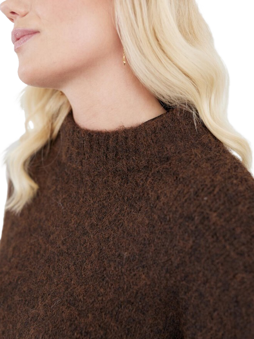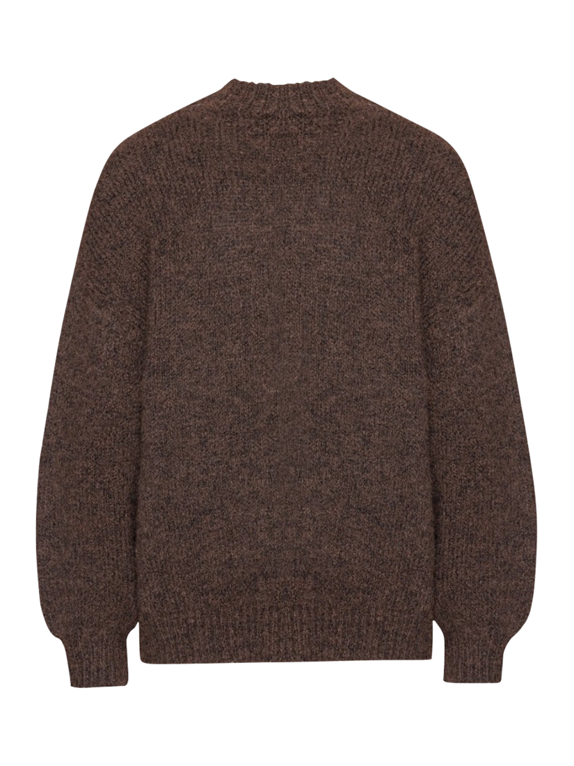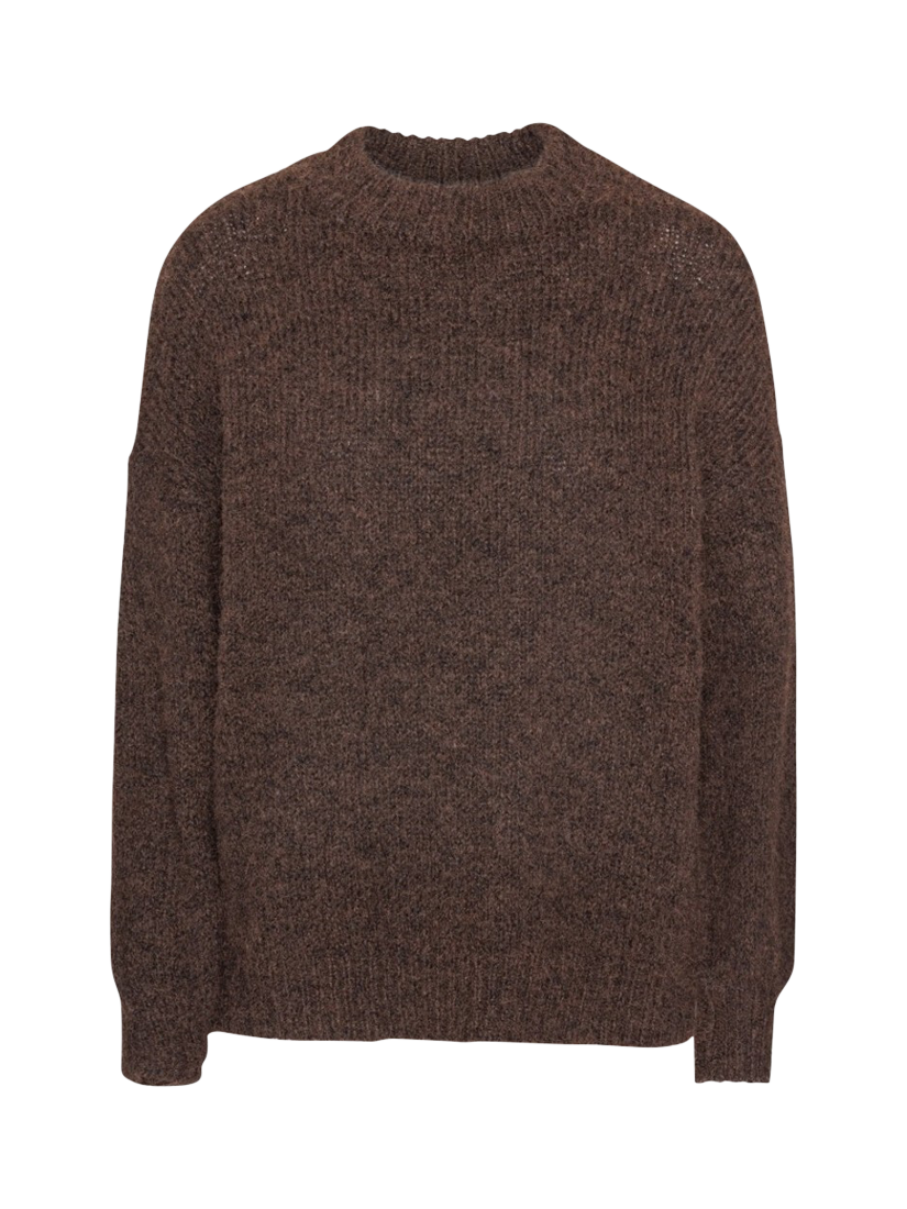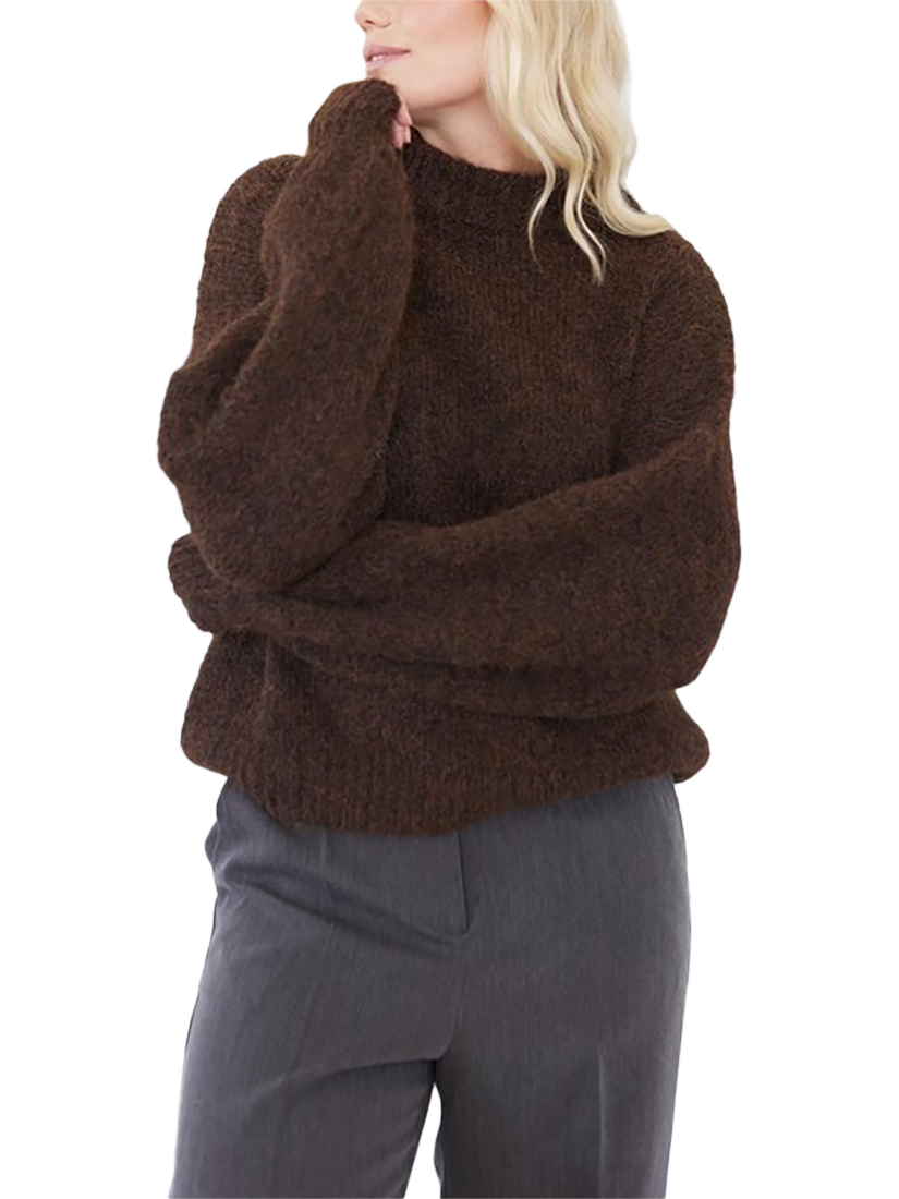 The Patrisia knit pullover is a loose knit with loose drop shoulder sleeves. The sleeves are loose with a puff effect and the elastic has a high neckline. The knitwear has an oversized fit.