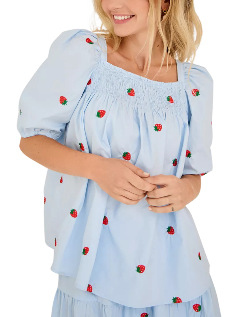 A-VIEWWinnie Strawberry Embroidered Smock Blouse