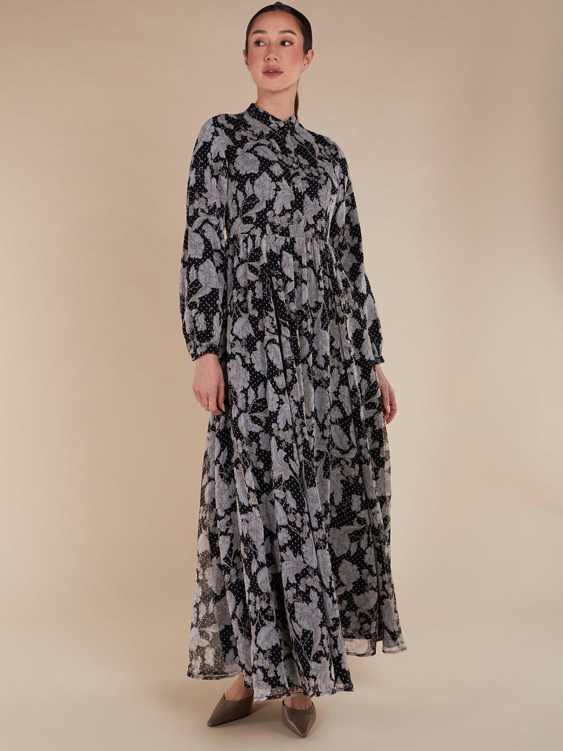 Made from textured fabric, the Aki Maxi Dress features an elegant fit with a voluminous skirt. The dress is fully lined and designed with self-fabric buttons, while the dress also includes a removable belt and discreet side pockets. Its natural earthy tones with a touch of black make it a versatile and stylish choice.