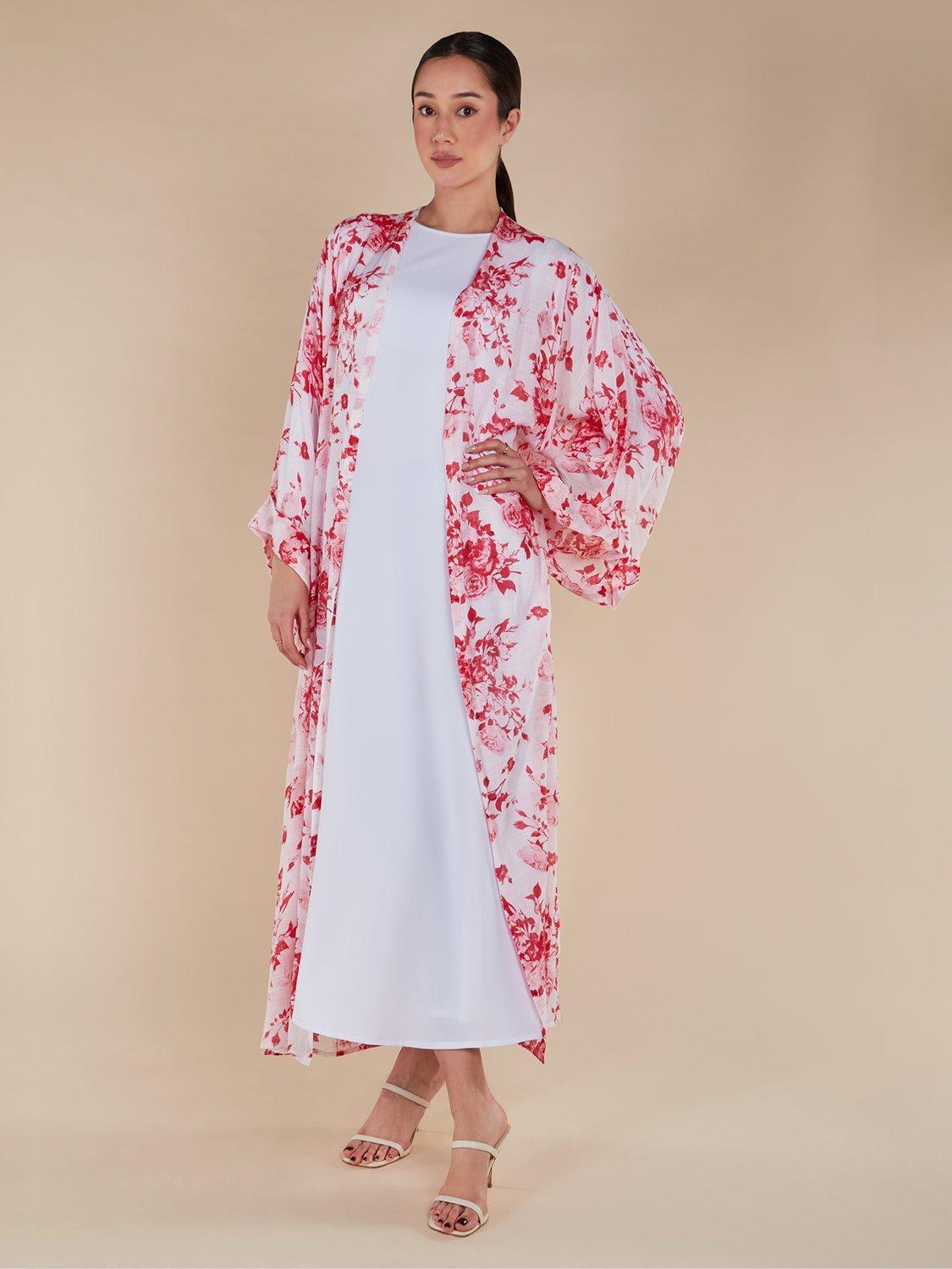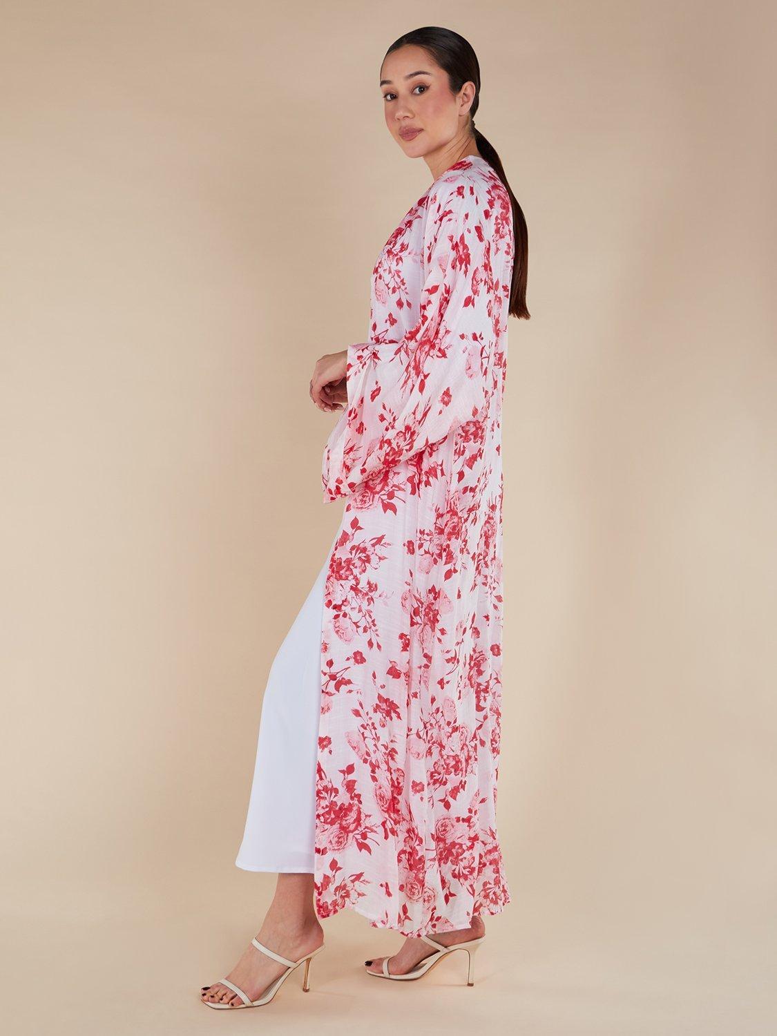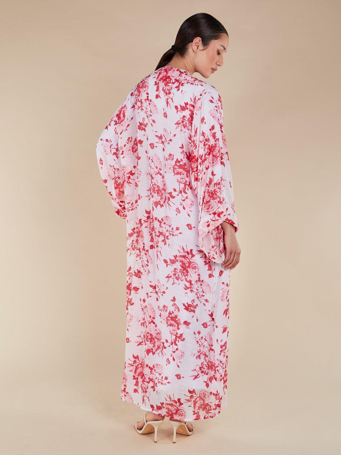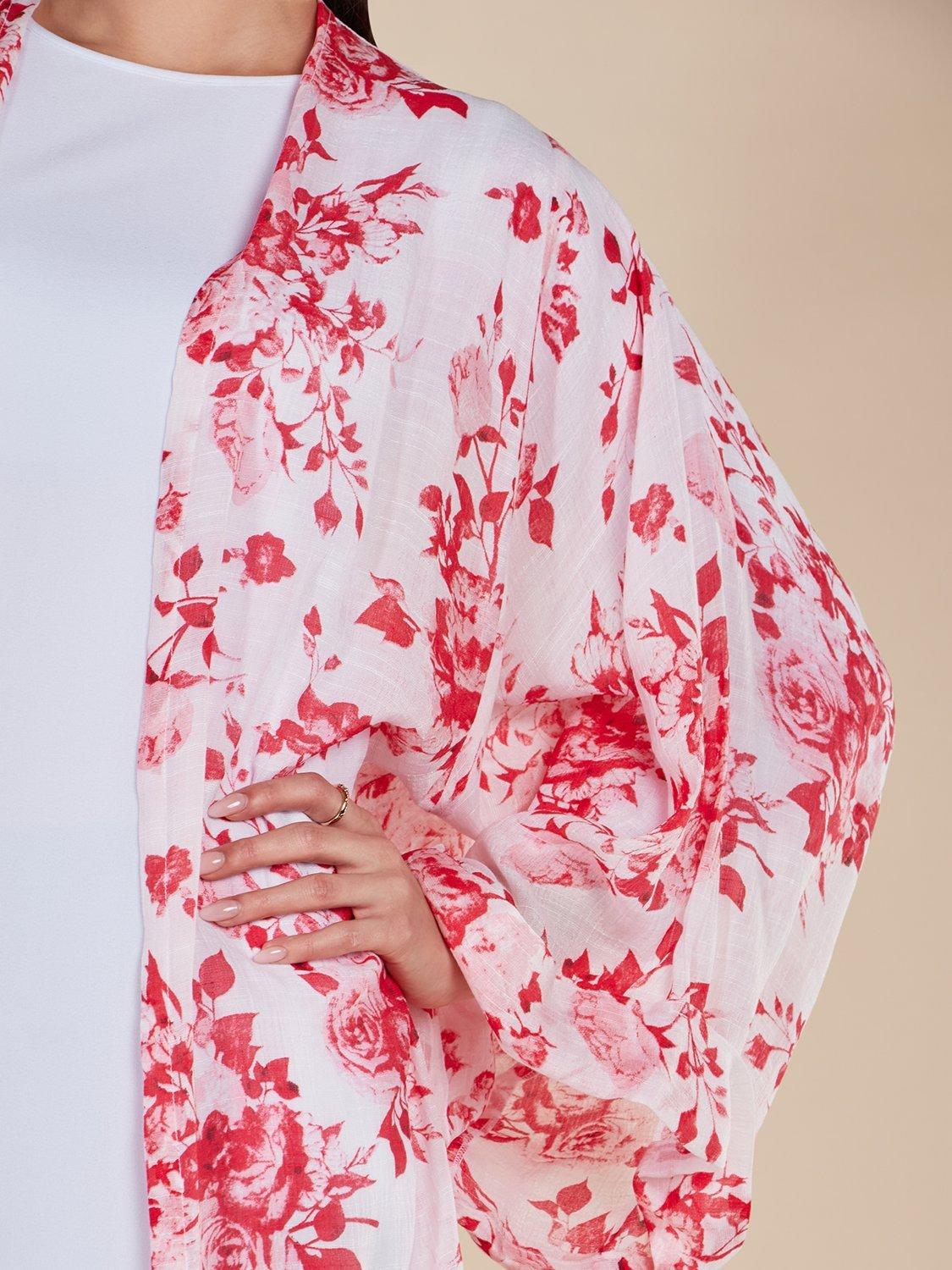 AabBenibara Floral Open Neck Kimono, Red