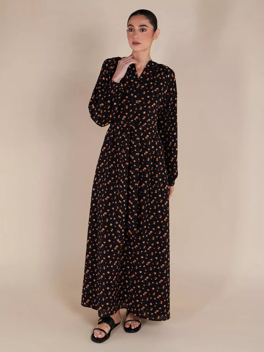 Made with a beautiful floral print, the Buttercup Maxi is the perfect addition to your spring wardrobe. Its pleated V neckline and self-fabric belt provide versatile styling options, while discreet side pockets add functionality. The A-line silhouette and light pleating around the back of the neckline ensure a comfortable and flowy fit, making this maxi a must-have for any occasion.