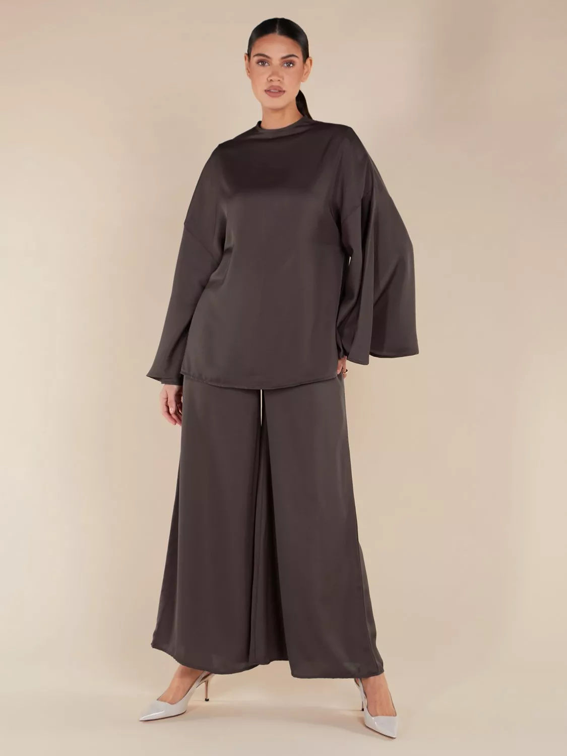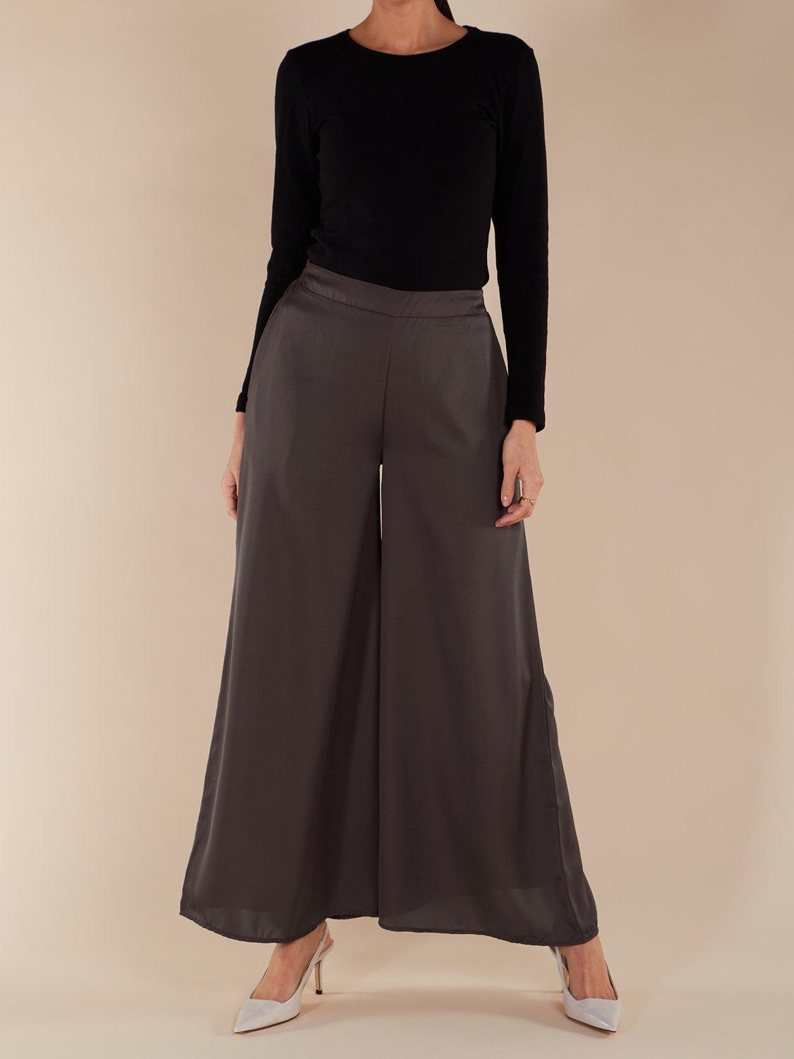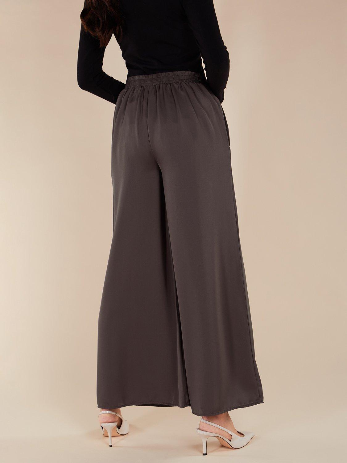 Experience ultimate comfort and style in these flared trousers with an elegant elasticated waist band at the back. Pair it perfectly with a dolmen top for a complete and sophisticated look.