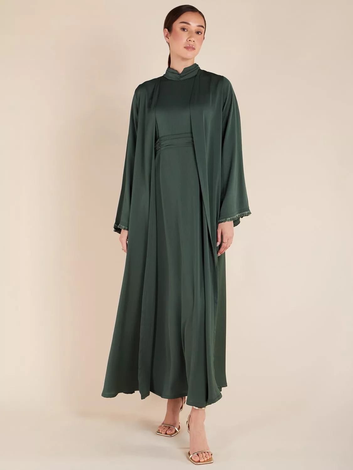 AabFringed Open Maxi Dress, Green