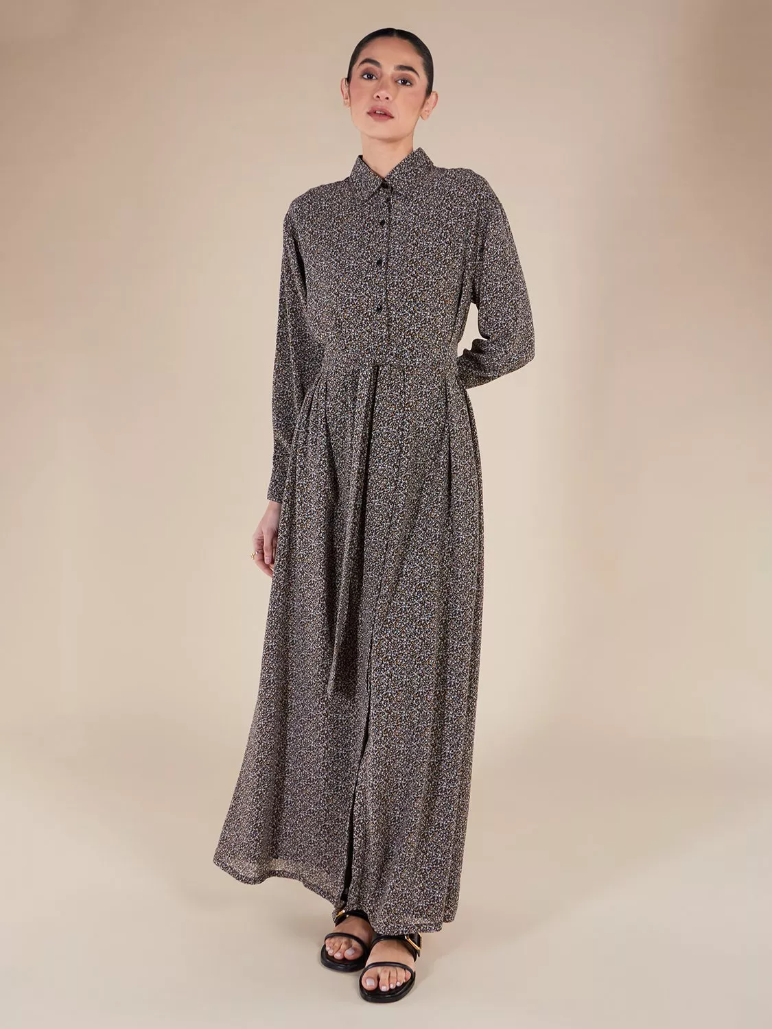 AabMicro Floral Shirt Maxi Dress, Yellow/Multi