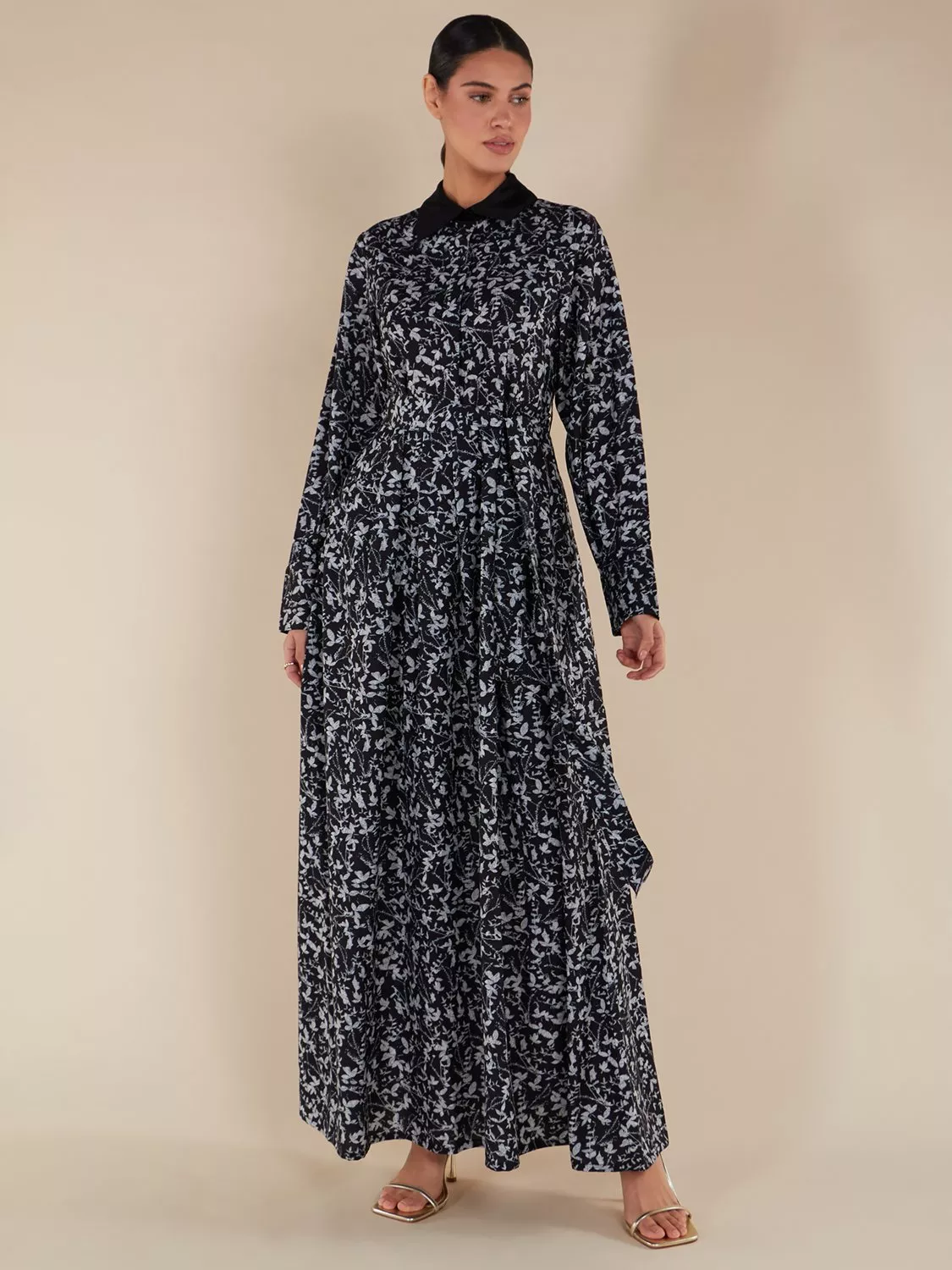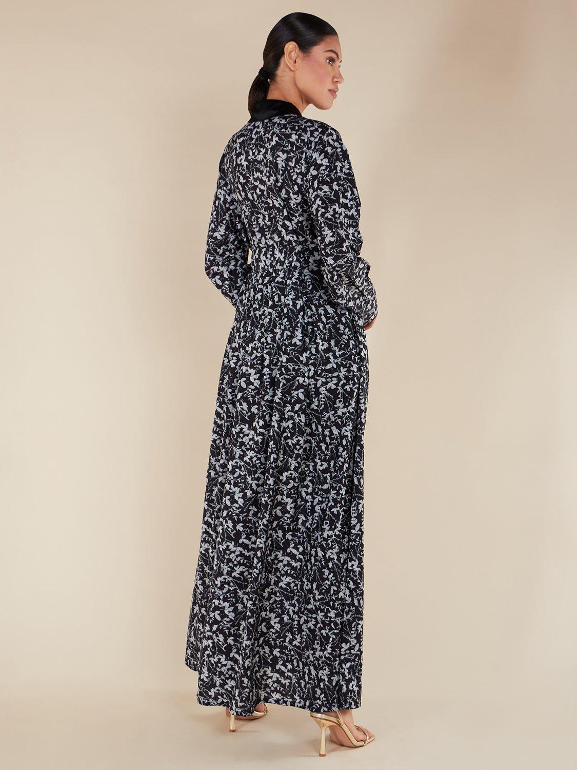 This maxi dress features a delicate print and a versatile design that makes it perfect for any evening event or vacation outfit.