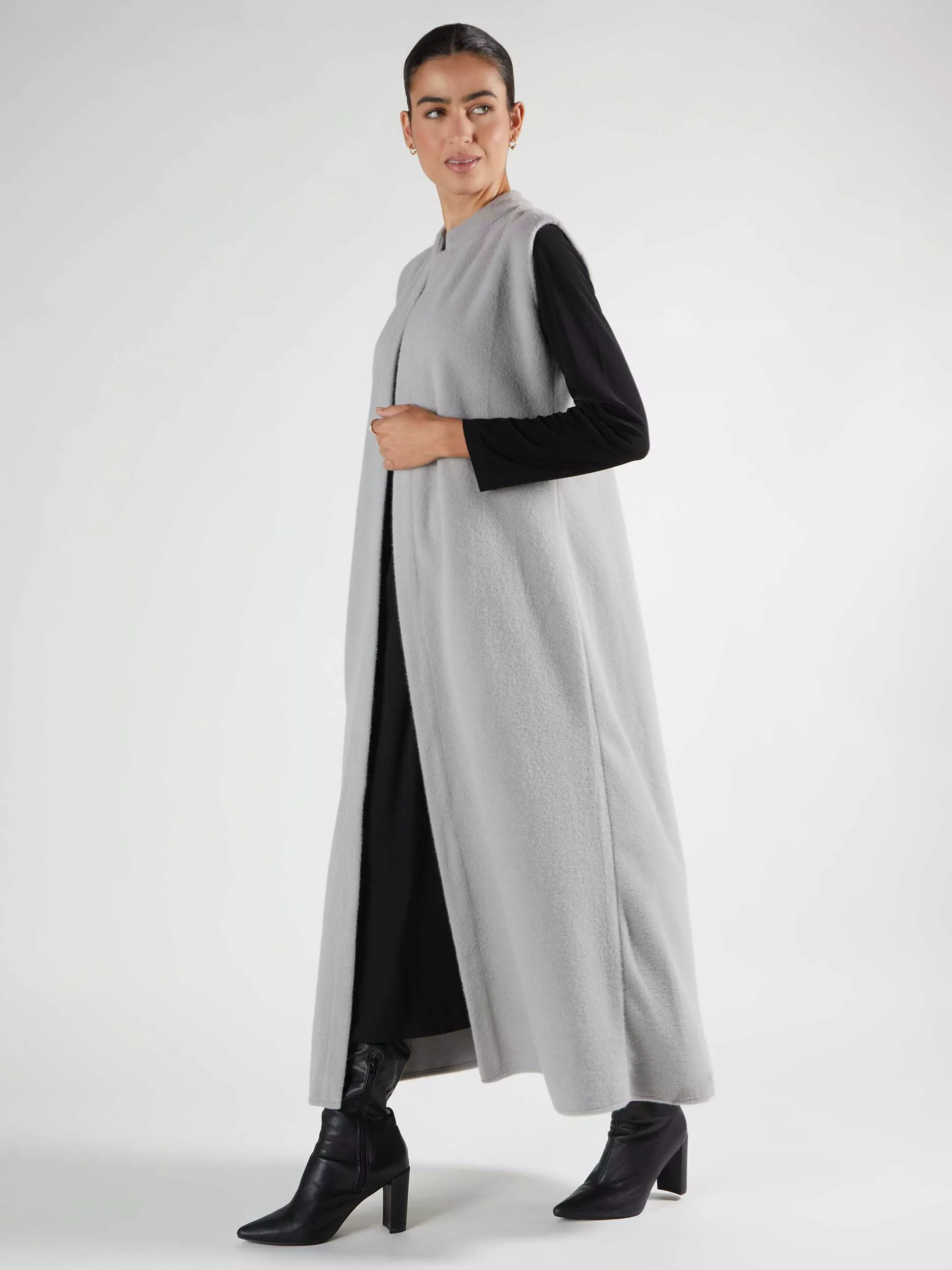 AabOpen Neck Longline Gilet, Light Grey