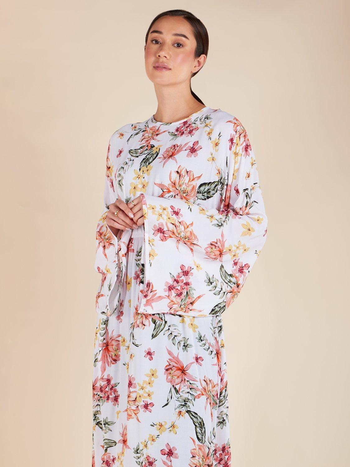 Featuring a vibrant floral print, this Orchid Maxi Dress offers a fluid cut with loose wide sleeves and a defined waist pleat for a stylish and comfortable fit. The concealed zip opening at the back adds a touch of functionality to this elegant piece.