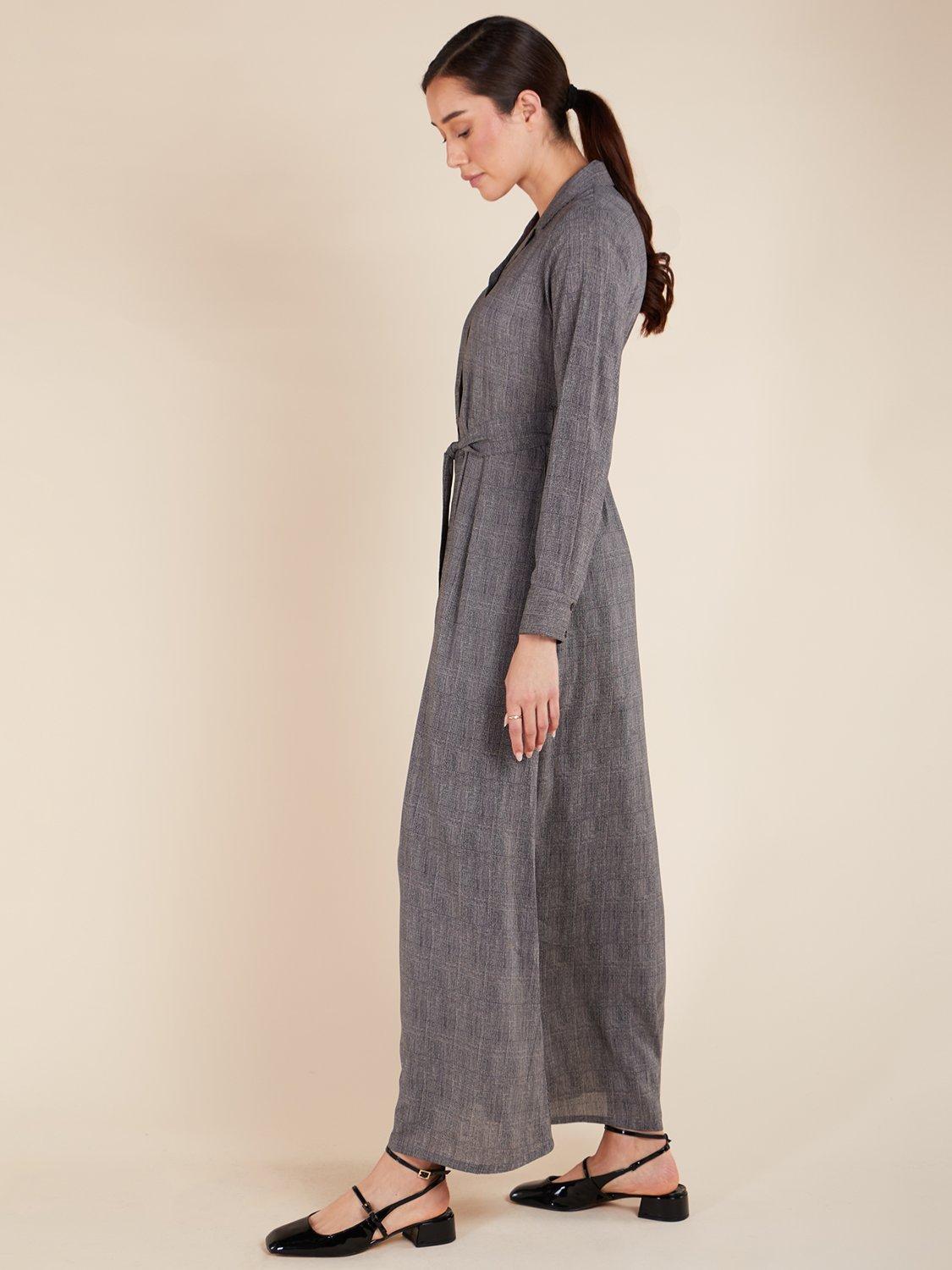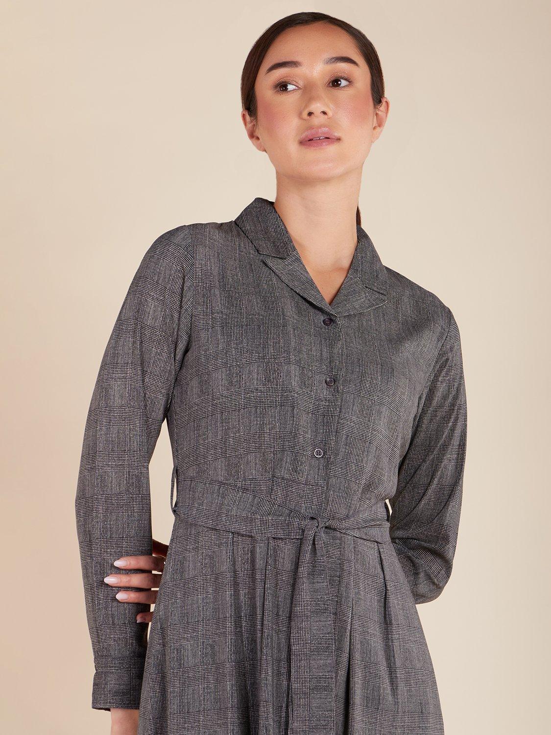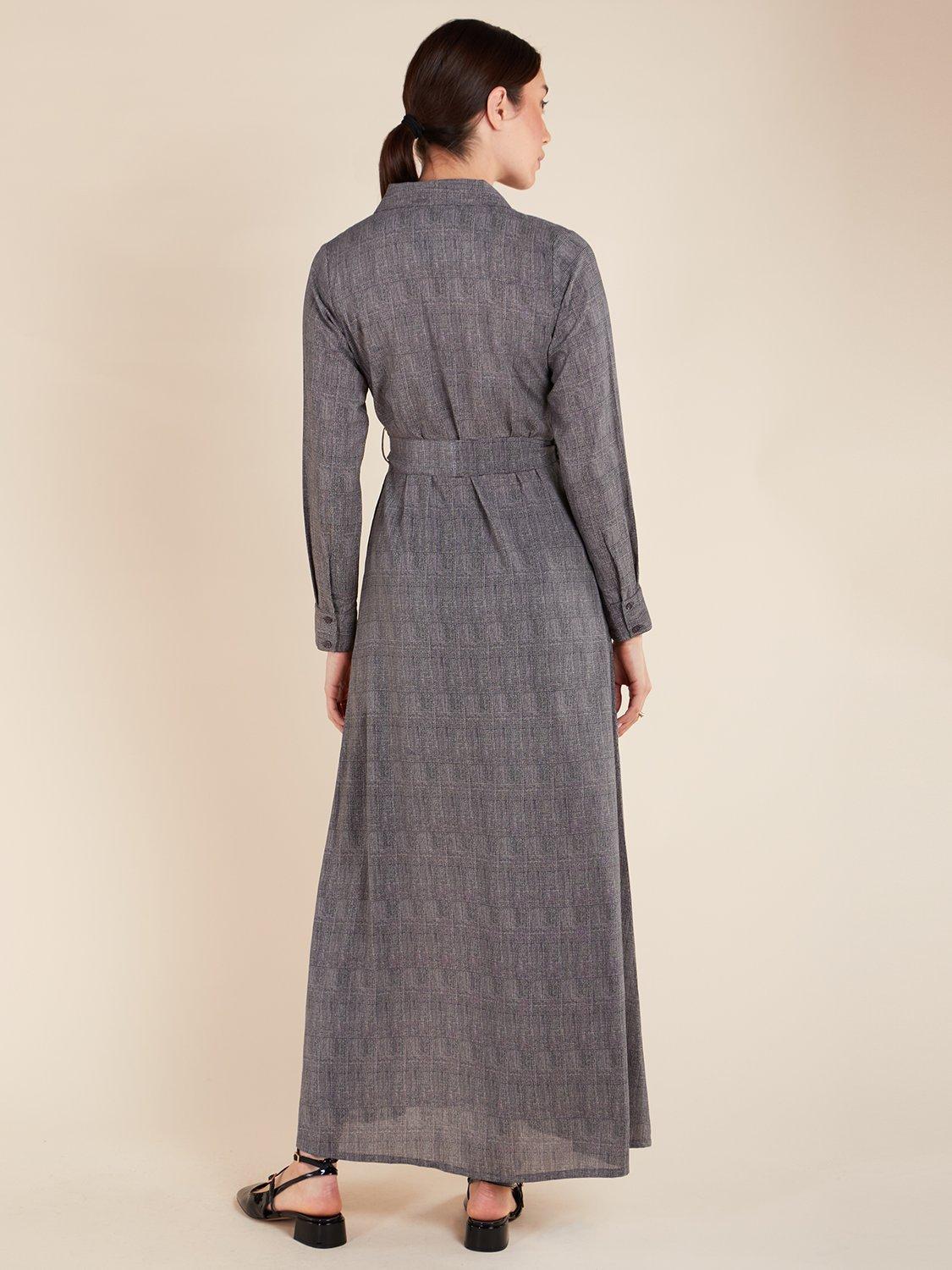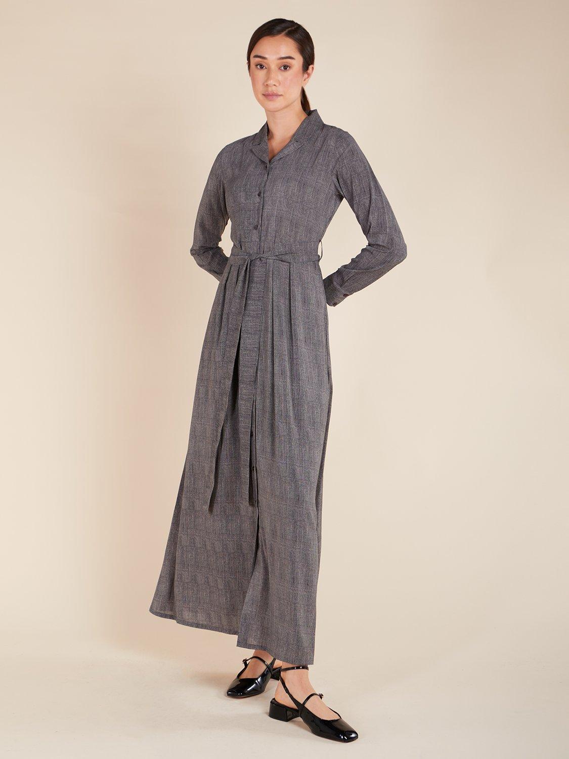 This plaid maxi dress is versatile for both work and formal occasions. It includes a notched collar, buttons along the front, and discreet side pockets. An optional belt is included, or you can pair it with your own.