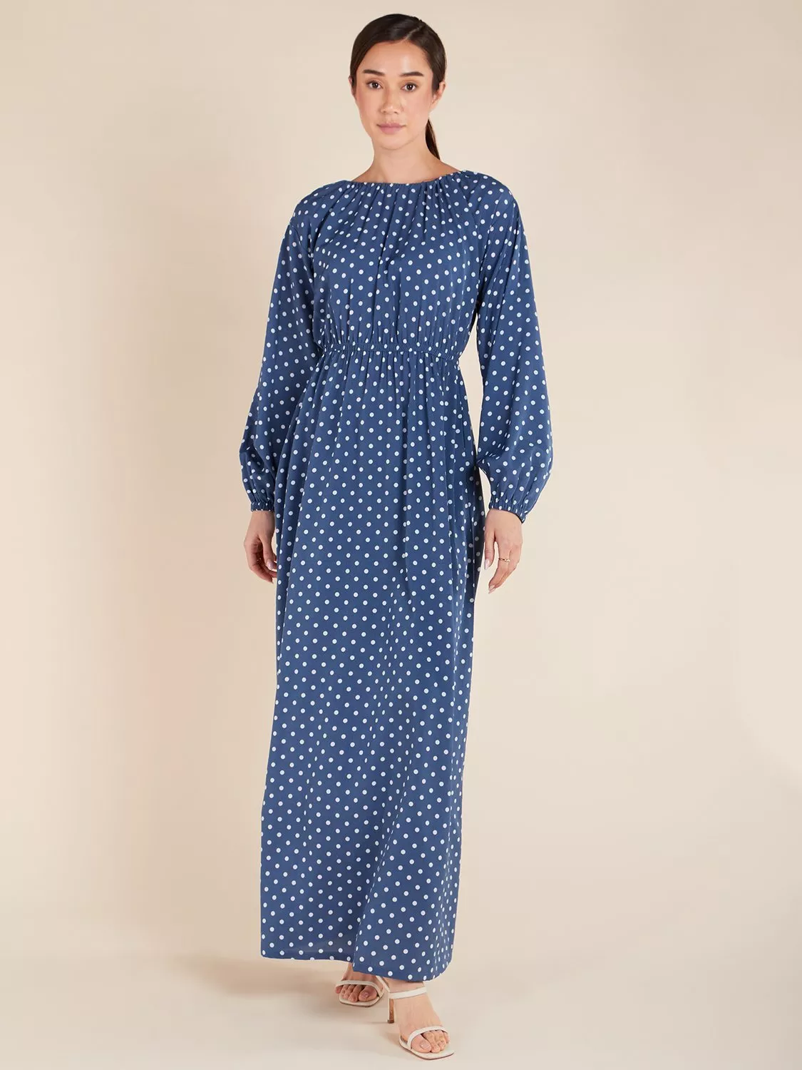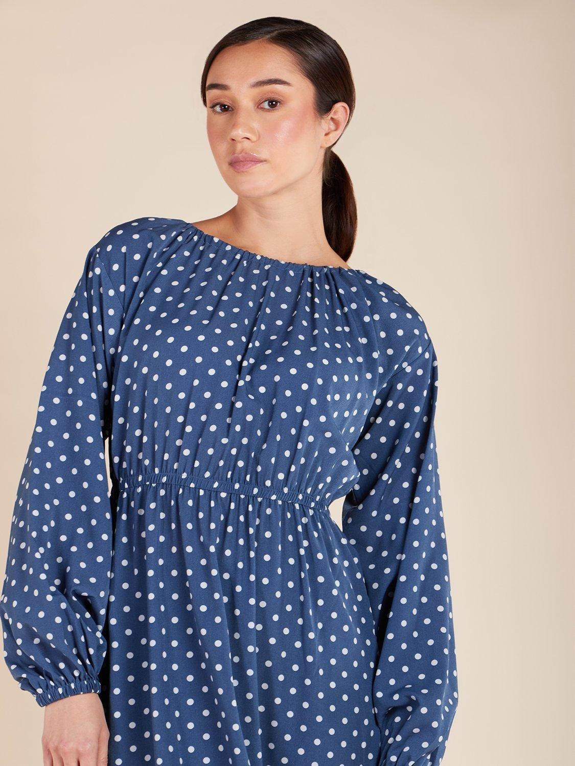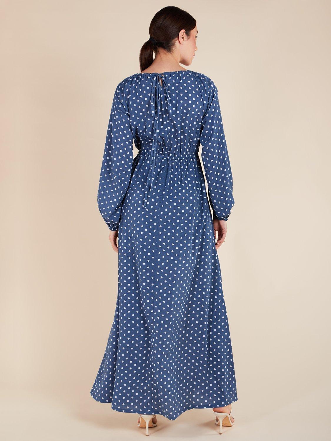 AabPolka Dot Drawstring Neck Maxi Dress, Blue