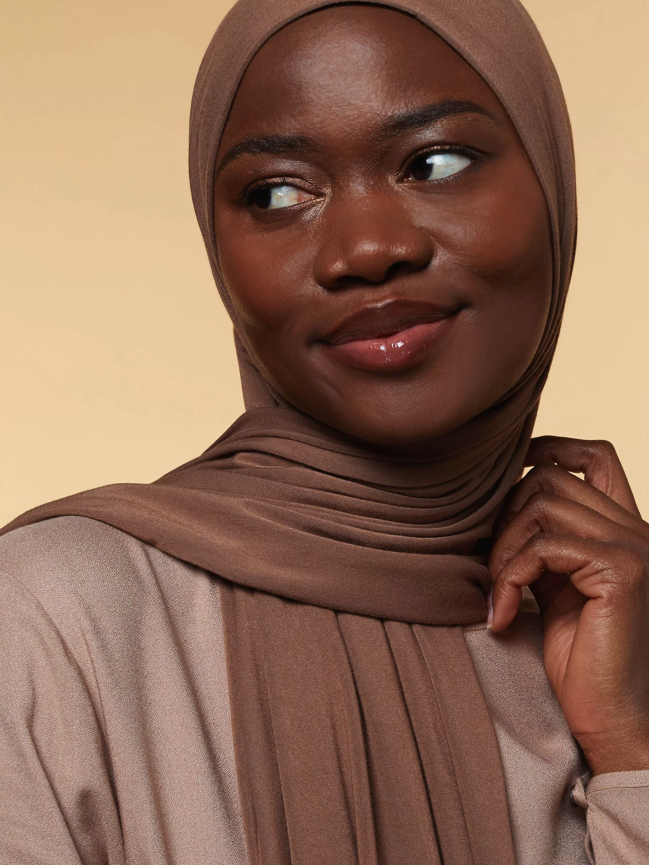 Effortless to style and incredibly comfortable to wear, with a subtle sheen, this hijab is made from a medium-heavy weight jersey that is soft, breathable, fully opaque and durable.