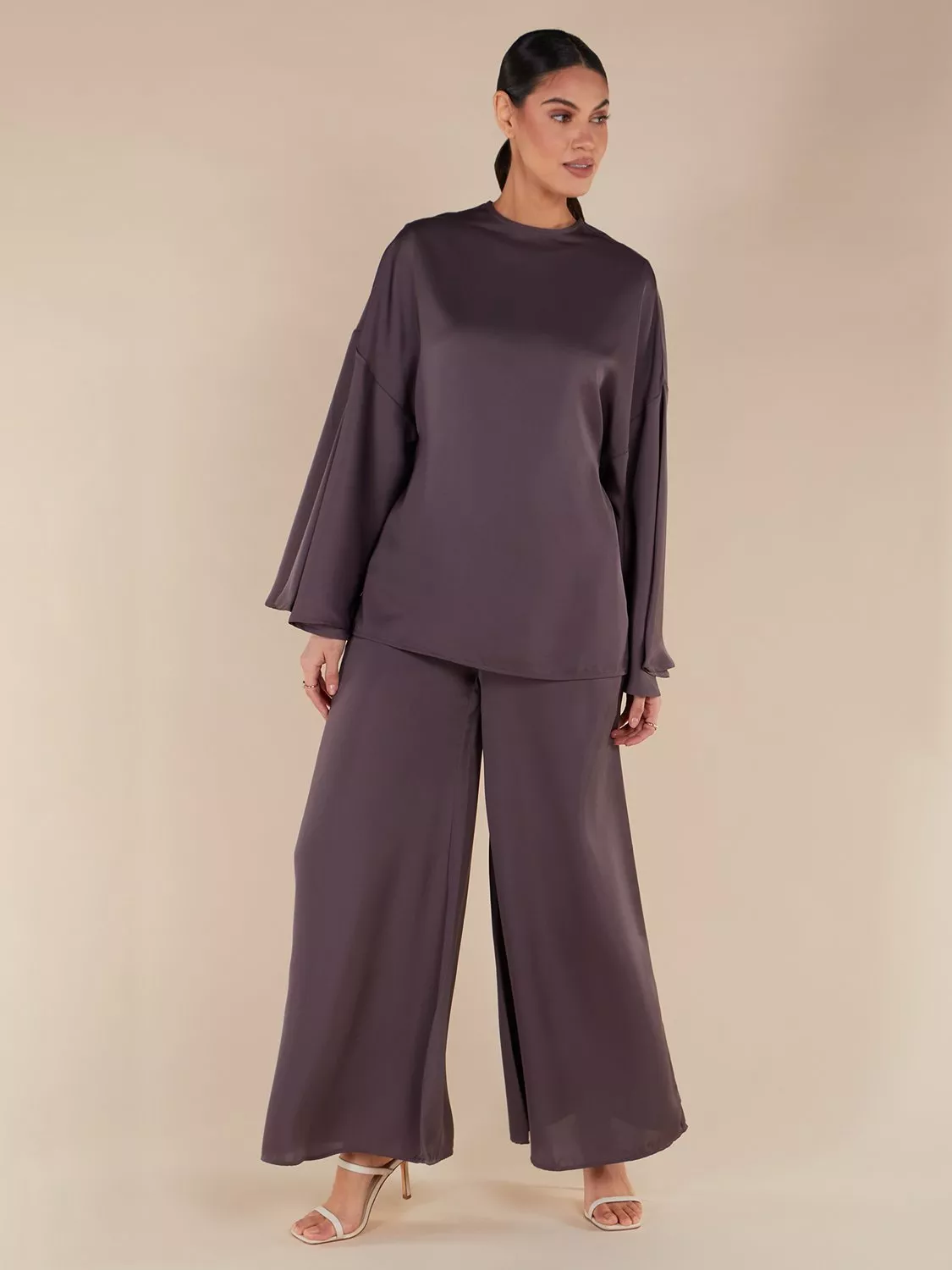 Experience ultimate comfort and style in these flared trousers with an elegant elasticated waist band at the back. Pair it perfectly with the matching dolmen top for a complete and sophisticated look.