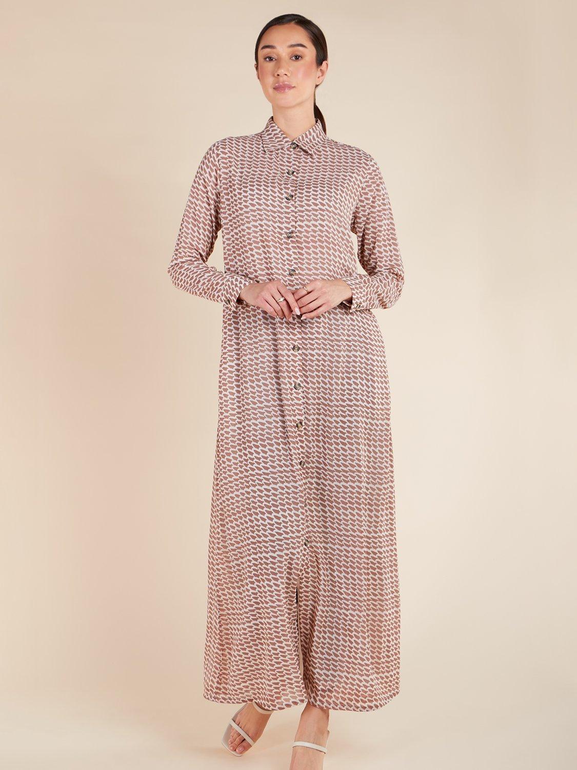 This stylish Yamane Maxi Dress features a geometric print and a slimline cut. The dress is fully lined, ensuring maximum modesty and comfort. With its horn buttons and discreet side pockets, it combines practicality and fashion seamlessly.