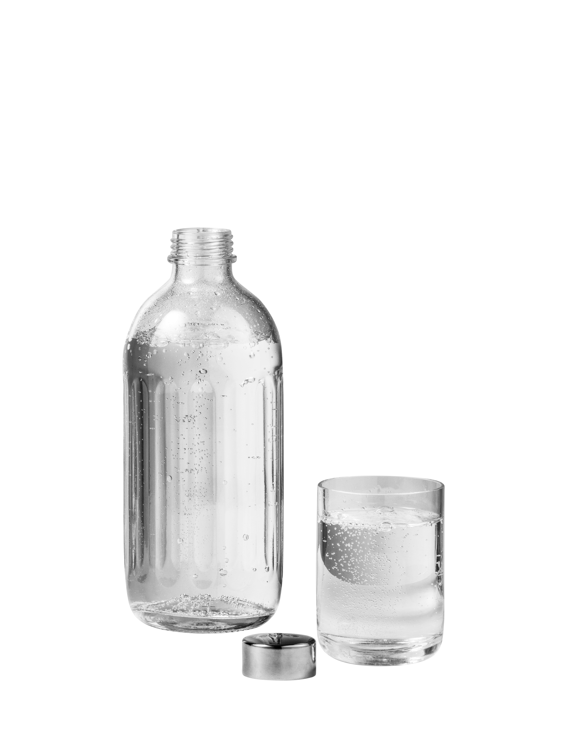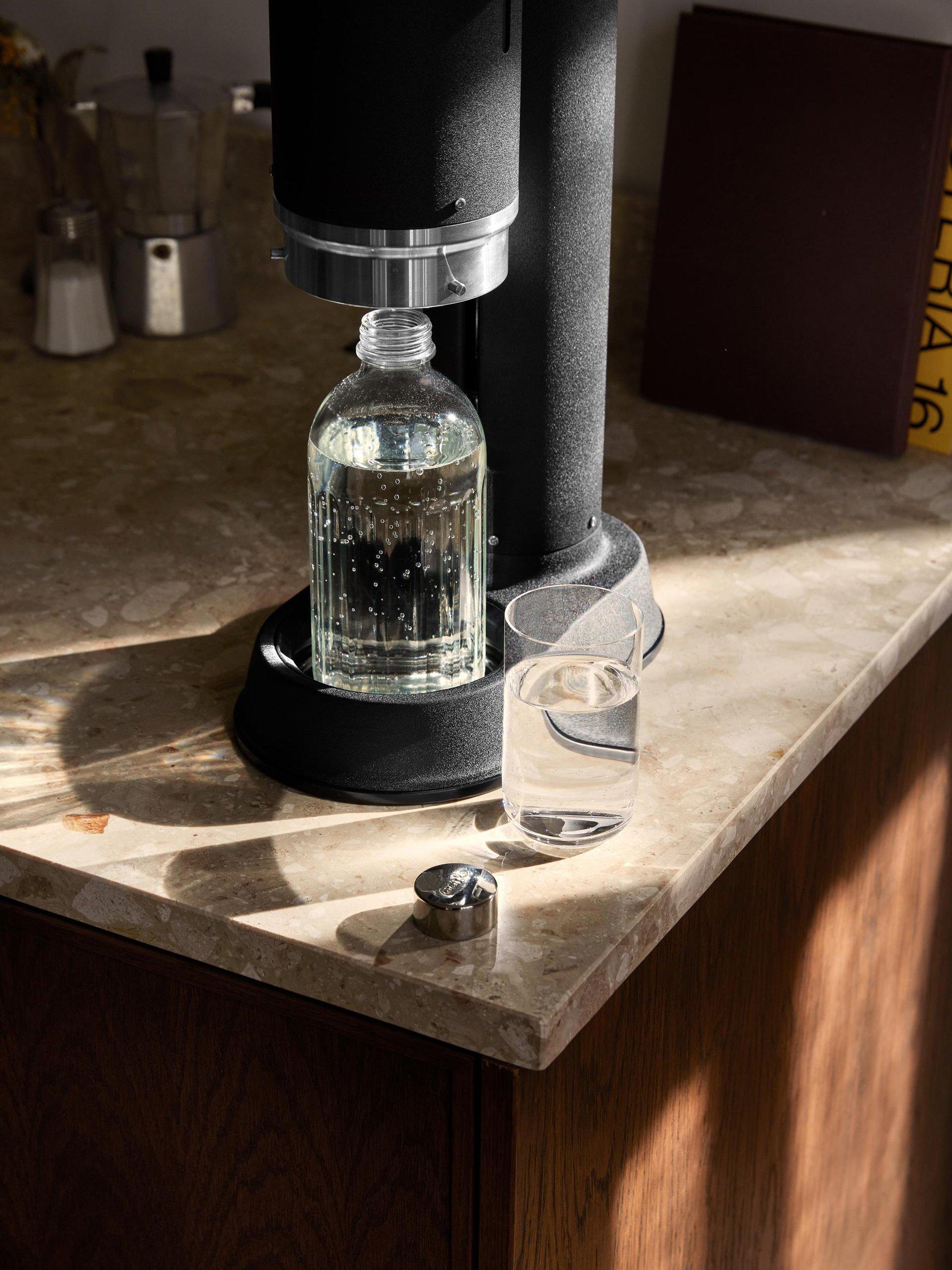 Designed with a sleek stainless steel cap and produced in Europe. We recommend buying two to three extra bottles to conveniently store and serve sparkling water.