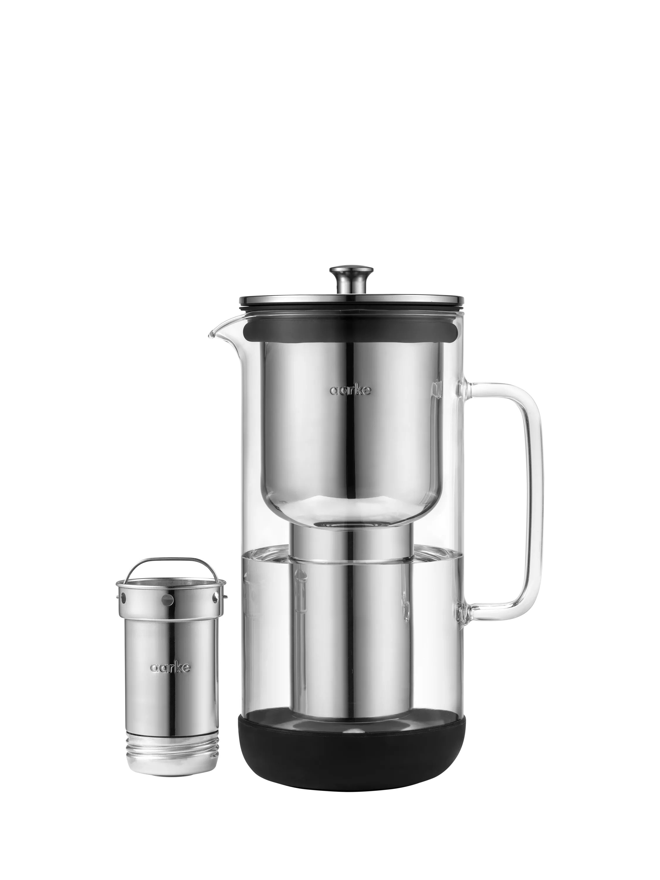 The patented Aarke Purifier will eliminate bad taste and filter out contaminants such as chlorine, heavy metals and limescale from your tap water. It comes with a refillable stainless-steel cartridge and a bag of Pure filter granules, manufactured to the highest quality standards. Made in glass and stainless steel, which is more hygienic than plastic.
