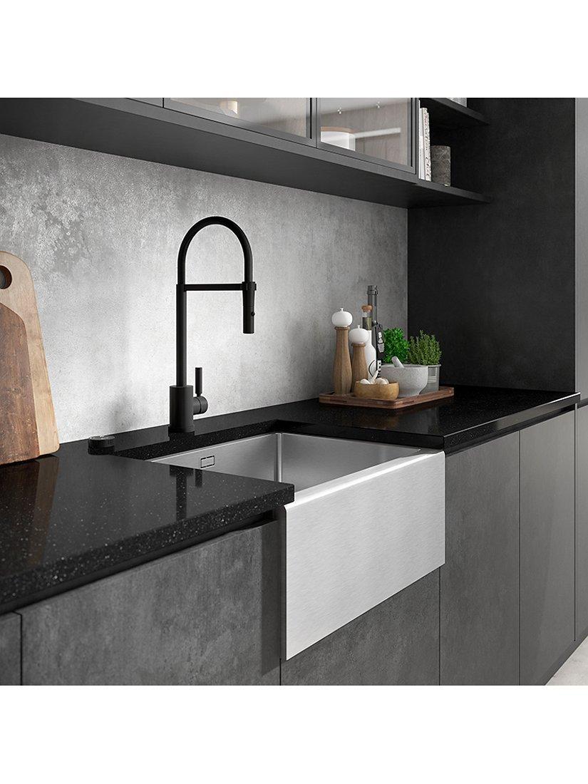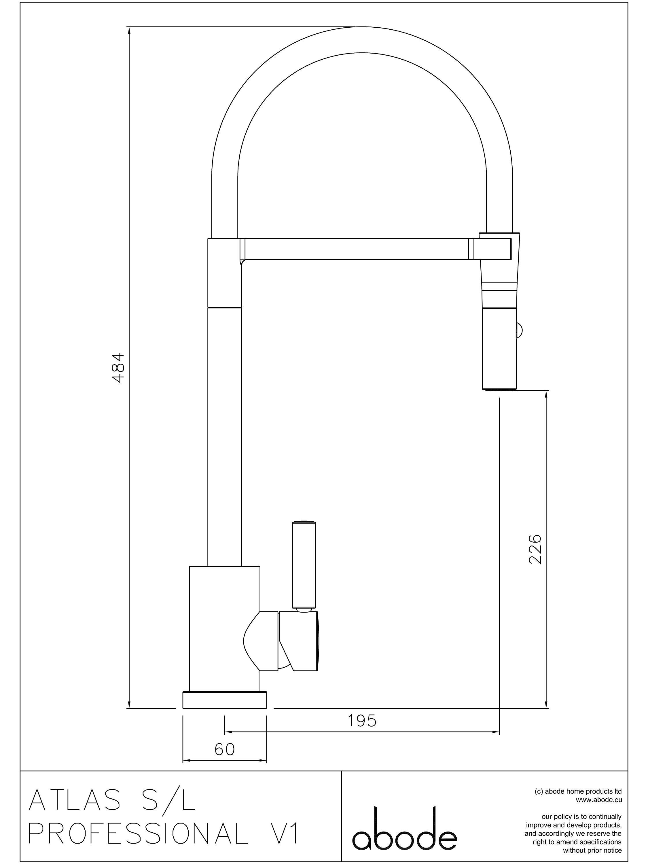 The Abode Atlas Professional kitchen mixer tap has an elegant arch shape, a functional design by a European architect. Control the ultra-smooth flow and temperature with a single lever. Use the Professional external pull-around hose to give you extra control over cleaning, rinsing and filling, with a spray function giving you even more power.