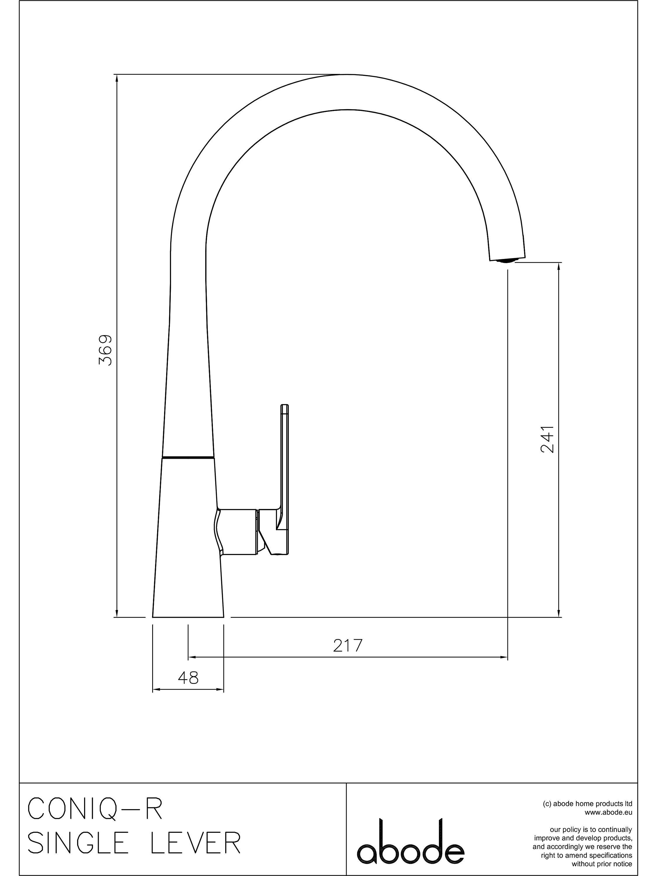 A modern design with a swan neck, the Coniq R tap from Abode has a clean and simple conical lever and base, a style statement for the kitchen. You can control the ultra-smooth flow and temperature with a single lever.