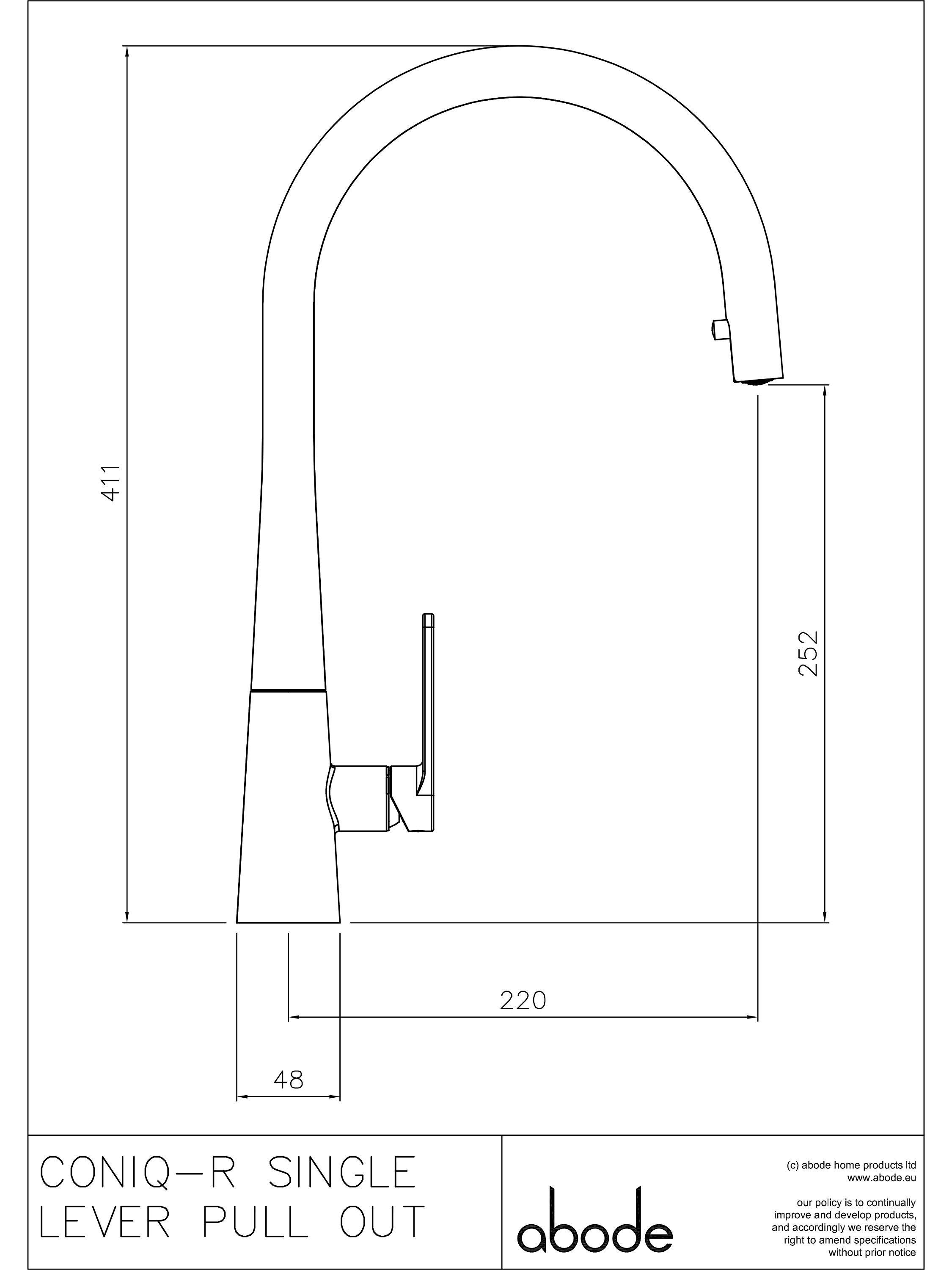 A modern design with a swan neck, the Coniq R tap from Abode has a clean and simple conical lever and base, a style statement for the kitchen. You can control the ultra-smooth flow and temperature with a single lever. Use the concealed pull-out hose to give you extra control over cleaning, rinsing and filling.