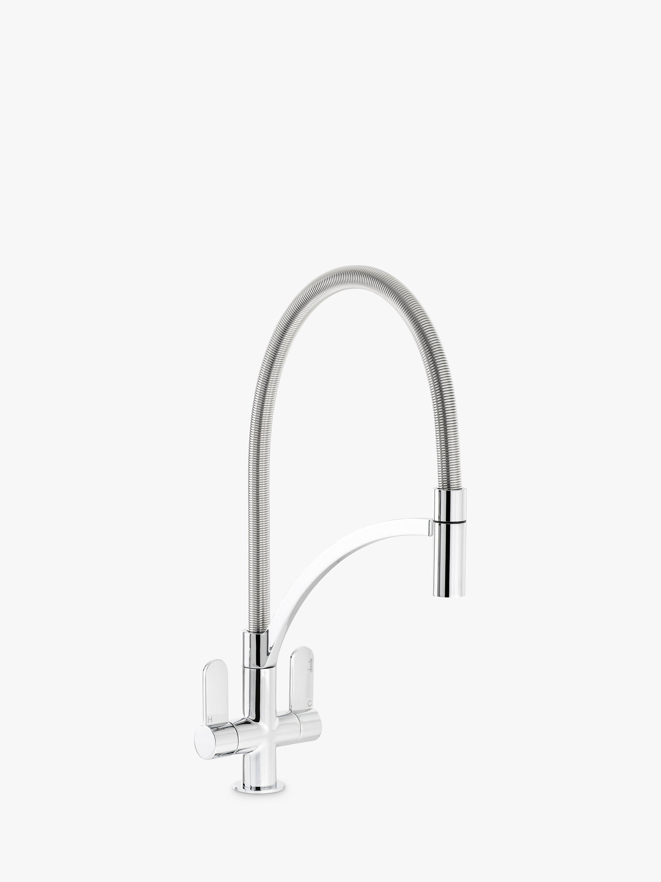 The Abode Genio Pull-Around kitchen tap has elongated twin levers to easily control the smooth flow and temperature of water. The sleek semi-professional design offers a great deal of flexibility with its pull-around hose feature that's great for getting into the corners of a sink and making everyday cleaning tasks that much simpler.