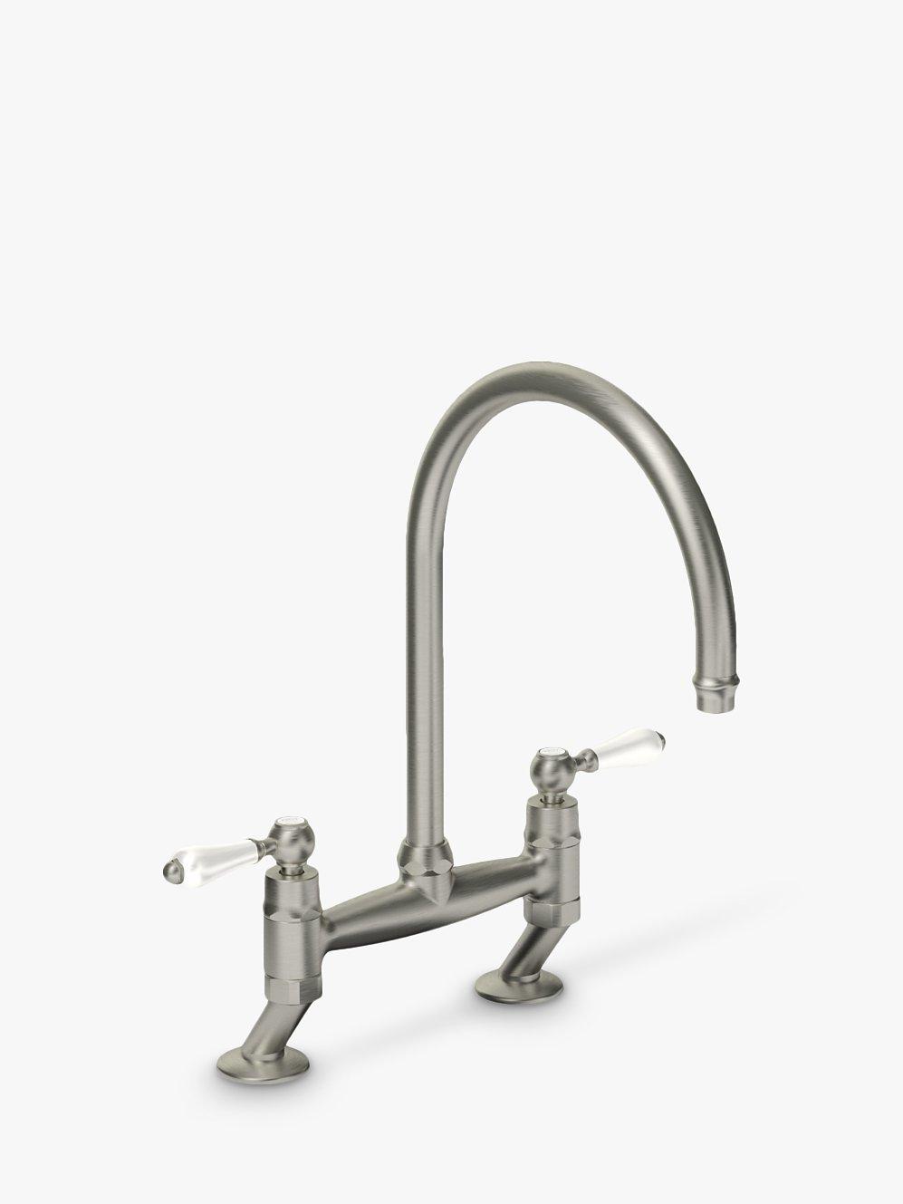 AbodeLudlow Bridge 2 Lever 2 Hole Kitchen Mixer Tap, Brushed Nickel