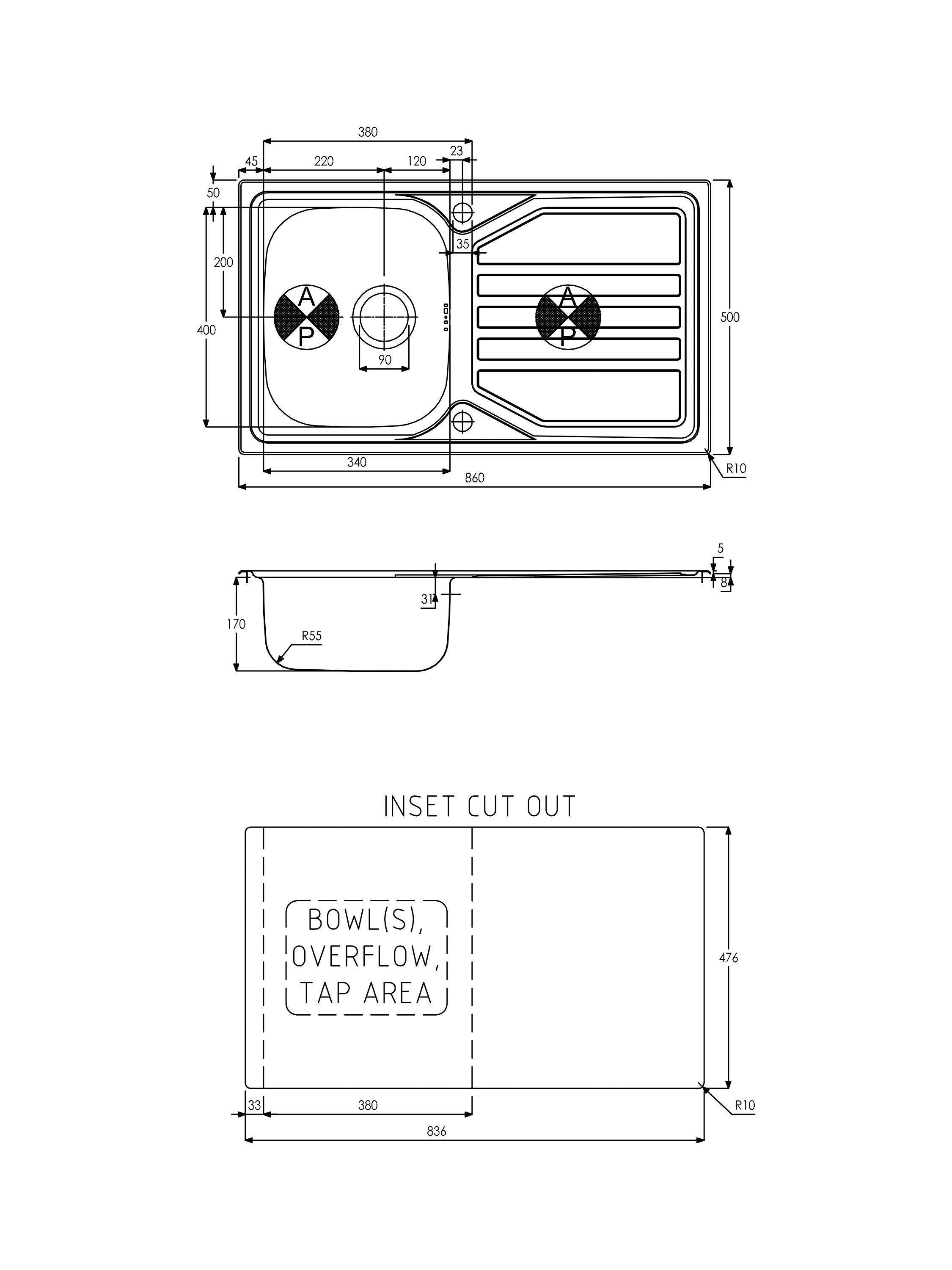 AbodeMikro Inset Kitchen Sink & Drainer, Stainless Steel