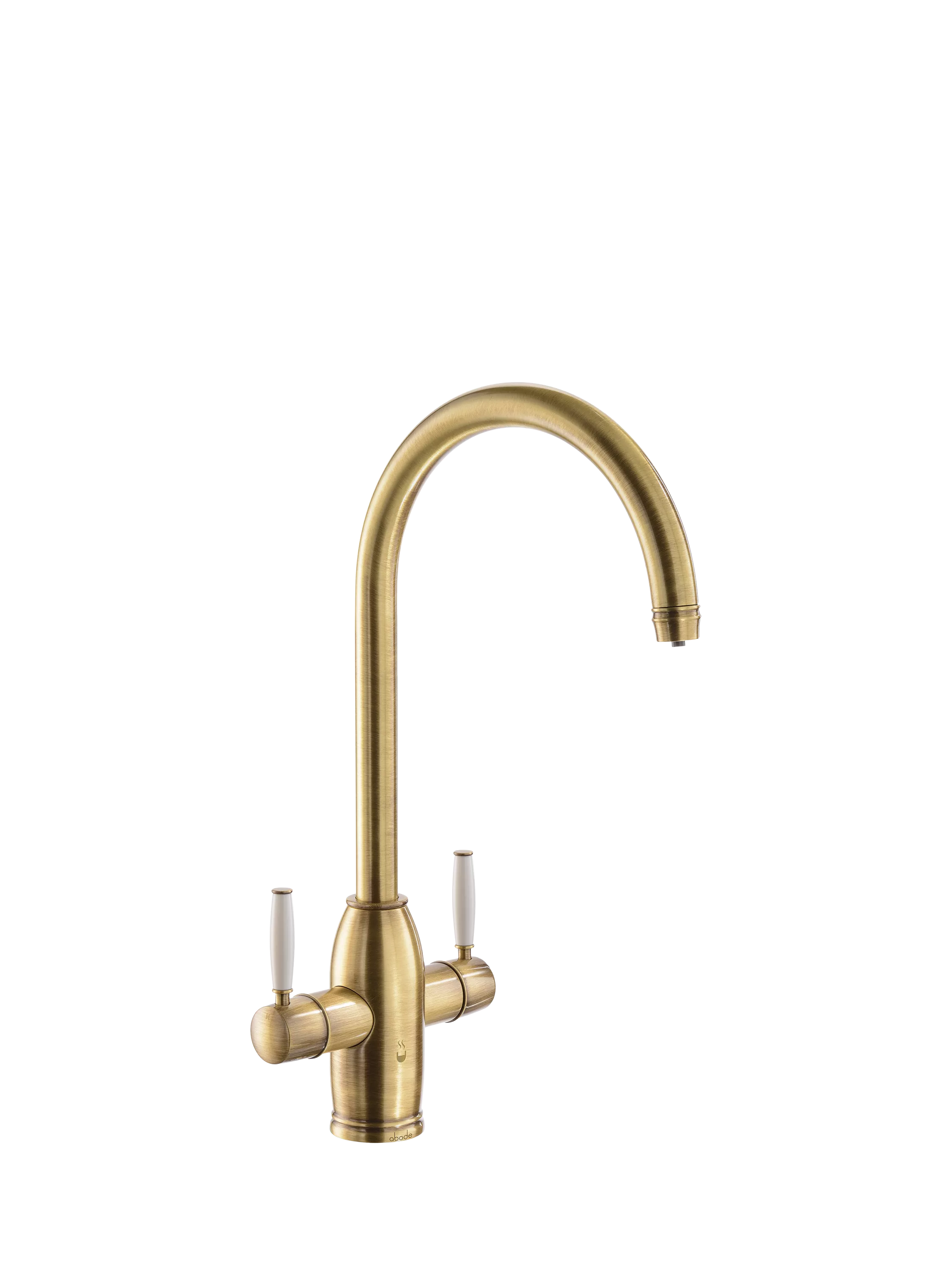 AbodePronteau Province 4-in-1 Steaming Hot Water Swivel Spout 2 Lever Kitchen Tap, Antique Brass