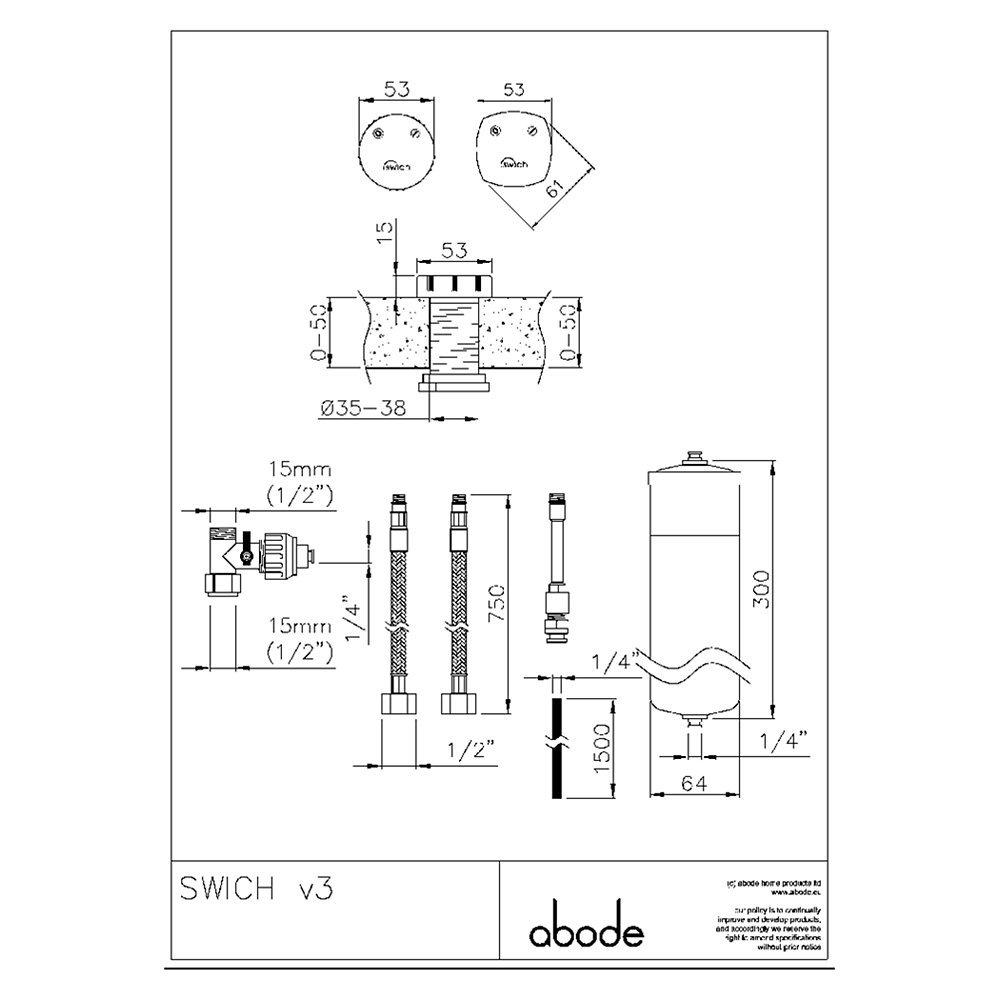 Simply turn the Swich dial control to indicate the type of water supply that you wish to channel through the tap giving you immediate access to both your domestic supply or the filtered water via the Abode Swich filter cartridge, housed discreetly under the sink.