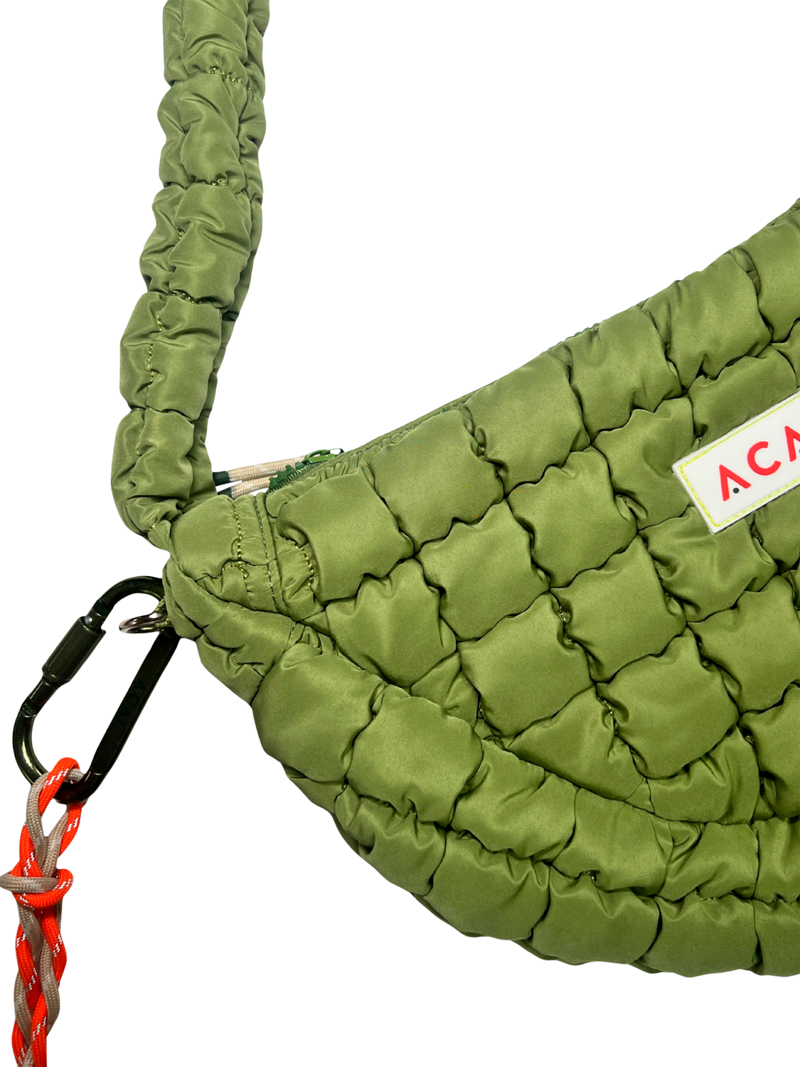 Compact, water-resistant, and made for life on the go. Designed with one spacious pocket for your must-haves, this quilted sling bag is crafted from a durable stretch fabric with a DWR (Durable Water Repellent) coating, helping water bead and roll off the surface to keep your belongings dry.