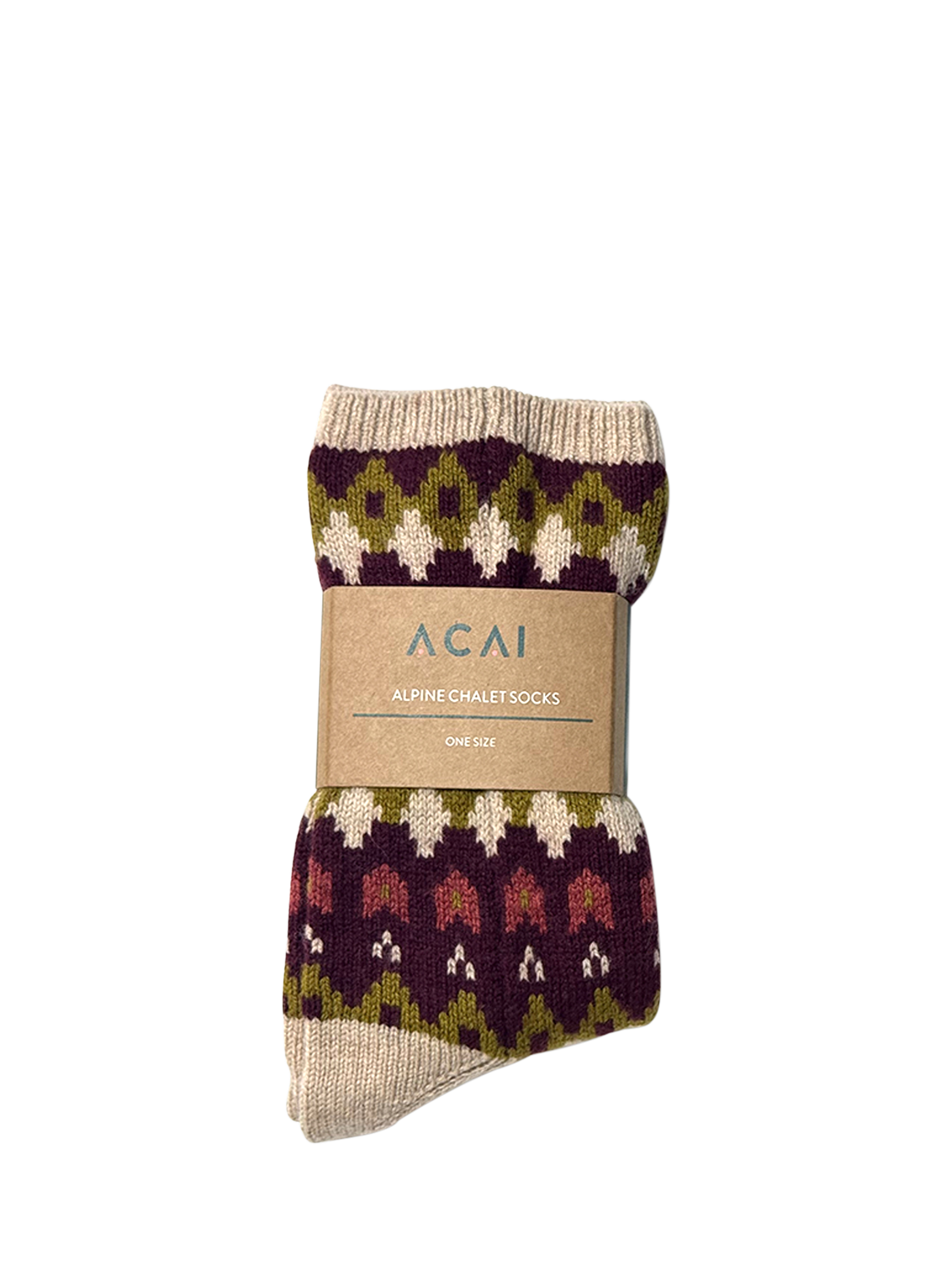 ACAIWomen's Alpine Chalet Wool Blend Socks, Cabernet