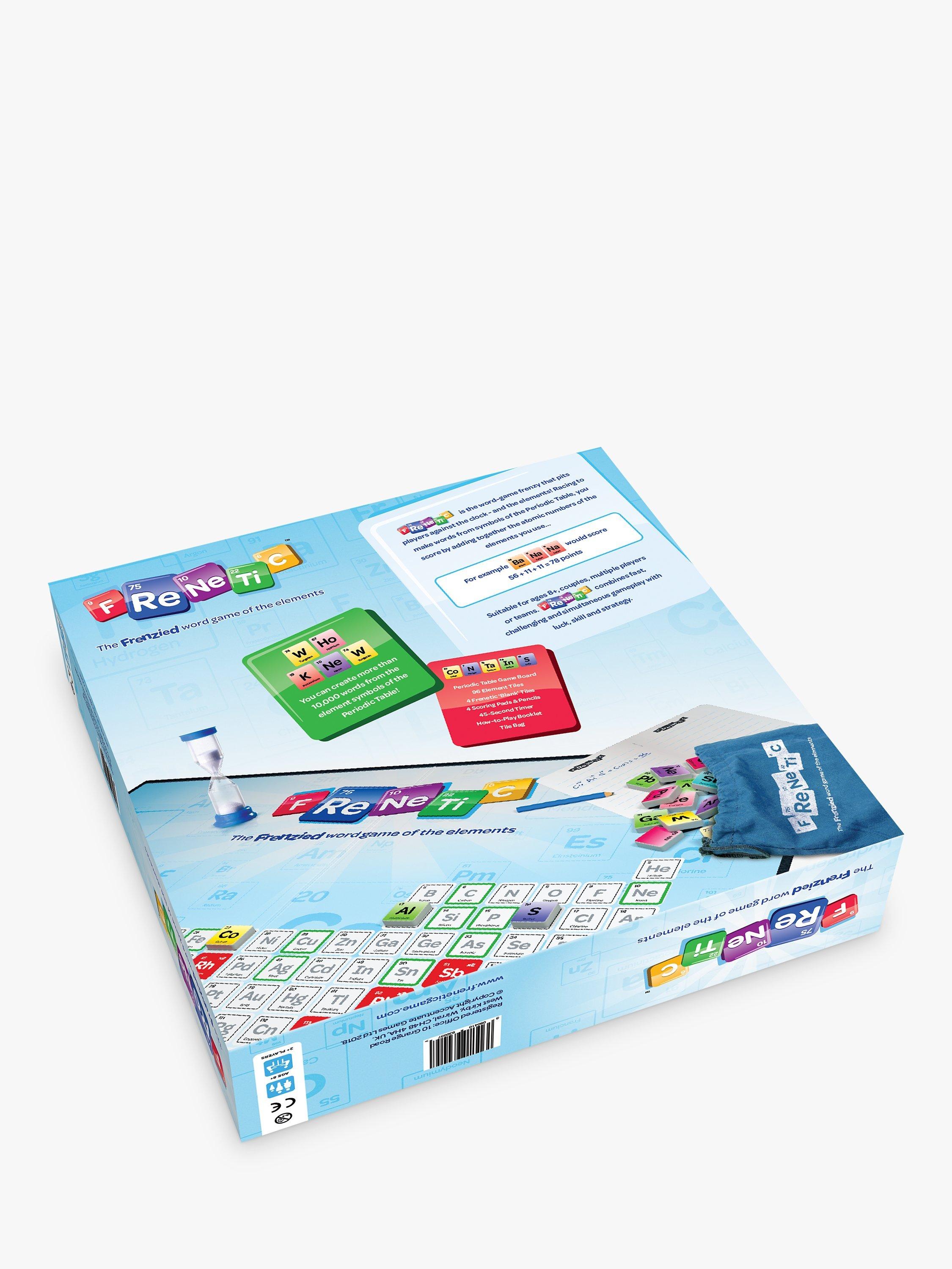 Players race against the clock to form as many words as possible using the element symbol tiles, adding together the atomic numbers of each tile used to create a word. For example : Ba Na Na = Banana = 78 points! Amazingly there are over 10,000 words that can be created using combinations of the element symbols of the FReNeTiC game board. FUN, FrANTiC, AcTiON is guaranteed.