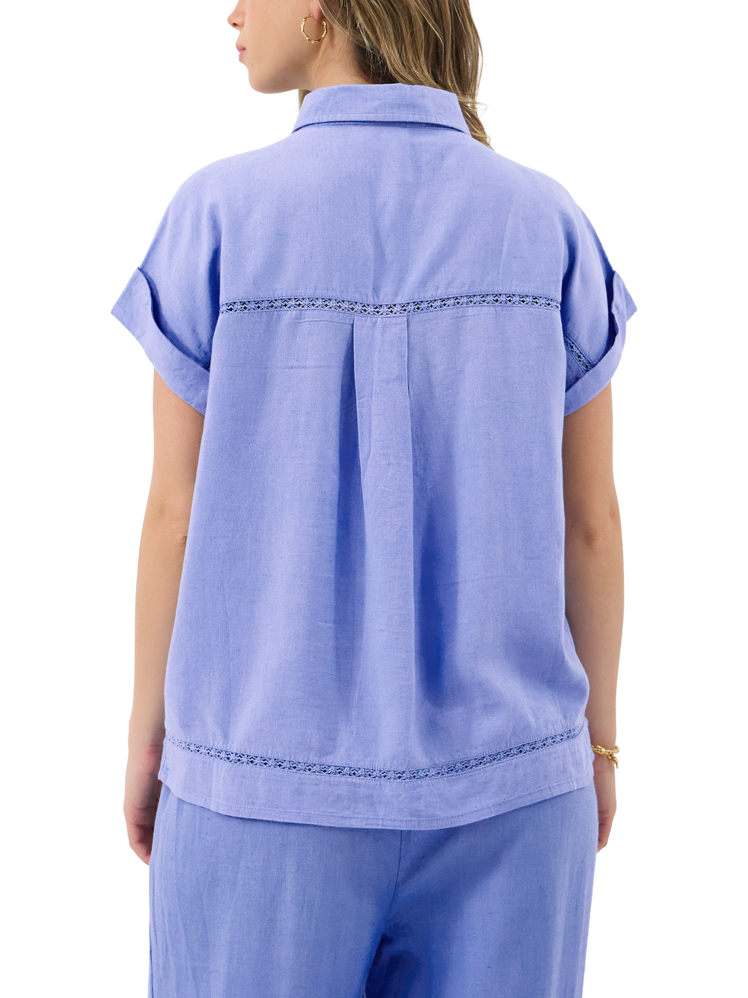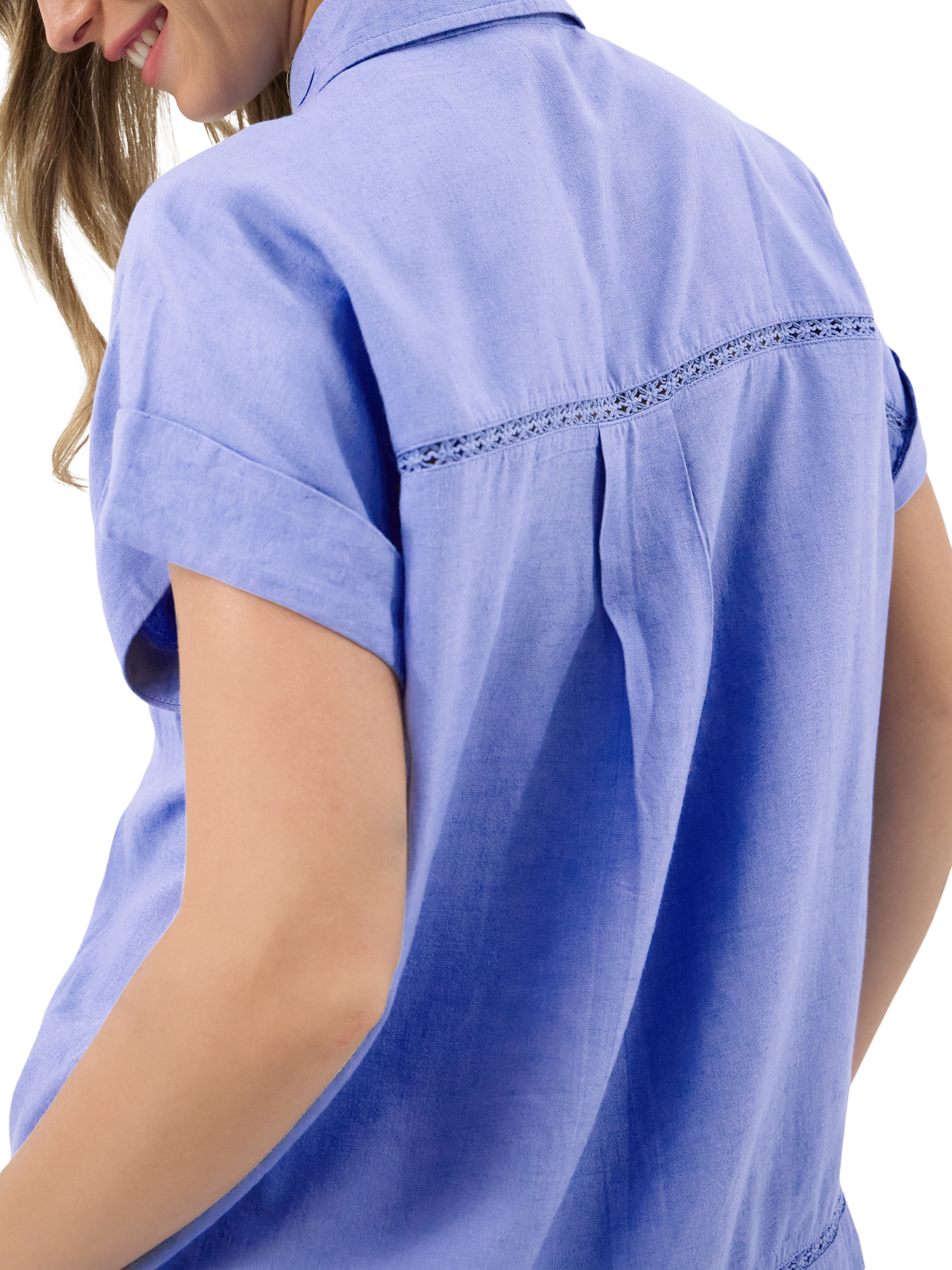 Designed with a collar and a line of lace, this crisp shirt is a suitcase staple.